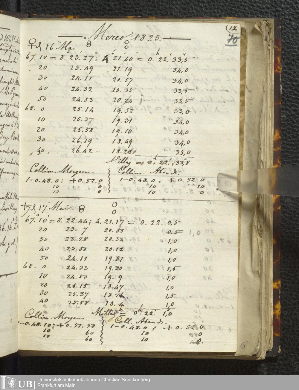 Ms. Ff. E. Rüppell I - Original Manuscript der auf meinen Reisen in Africa in den Jahren 1822 - 1827 gemachten astronomischen Beobachtungen. Sie sind sämmtlich theils in Zach's astronomischer Correspondenz, theils in dem Anhang zu meinen Reisen in Nubien pp. abgedruckt