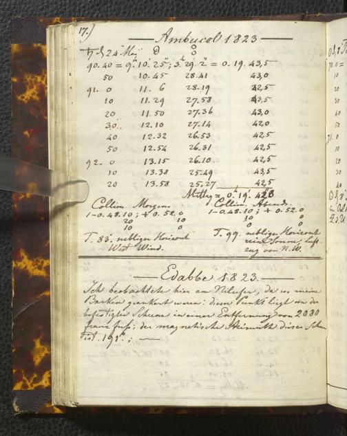 Ms. Ff. E. Rüppell I - Original Manuscript der auf meinen Reisen in Africa in den Jahren 1822 - 1827 gemachten astronomischen Beobachtungen. Sie sind sämmtlich theils in Zach's astronomischer Correspondenz, theils in dem Anhang zu meinen Reisen in Nubien pp. abgedruckt