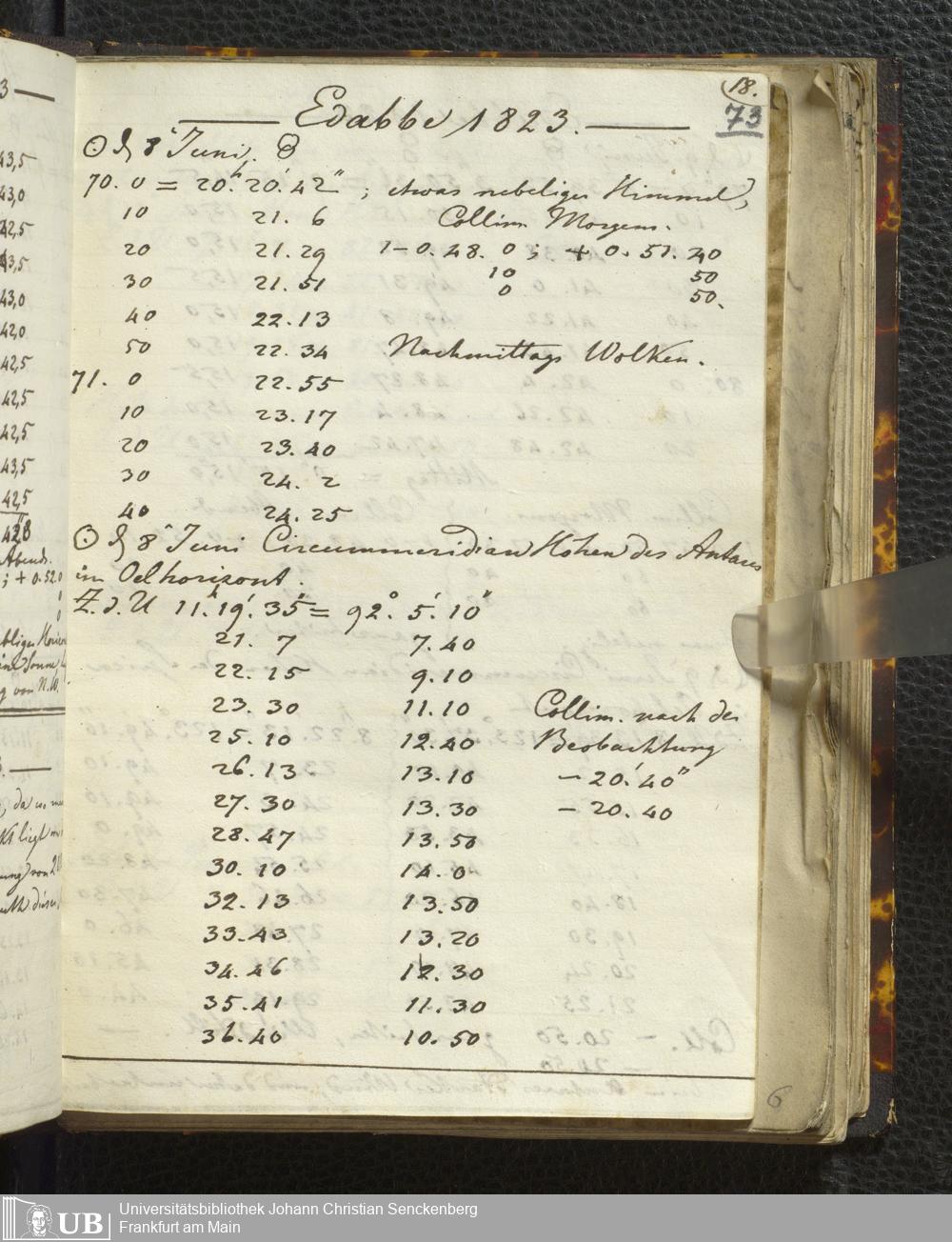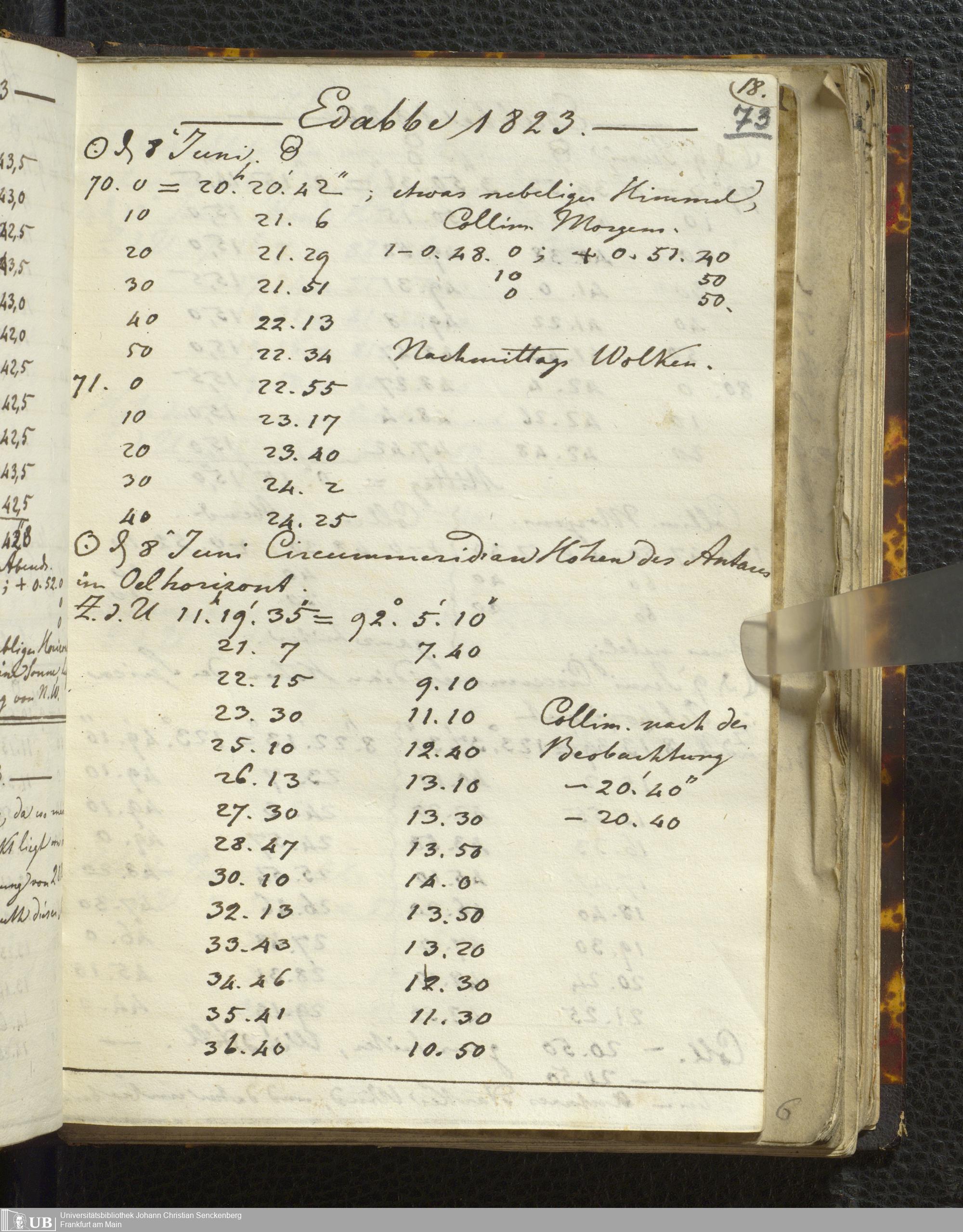 Ms. Ff. E. Rüppell I - Original Manuscript der auf meinen Reisen in Africa in den Jahren 1822 - 1827 gemachten astronomischen Beobachtungen. Sie sind sämmtlich theils in Zach's astronomischer Correspondenz, theils in dem Anhang zu meinen Reisen in Nubien pp. abgedruckt