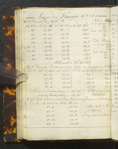 Ms. Ff. E. Rüppell I - Original Manuscript der auf meinen Reisen in Africa in den Jahren 1822 - 1827 gemachten astronomischen Beobachtungen. Sie sind sämmtlich theils in Zach's astronomischer Correspondenz, theils in dem Anhang zu meinen Reisen in Nubien pp. abgedruckt