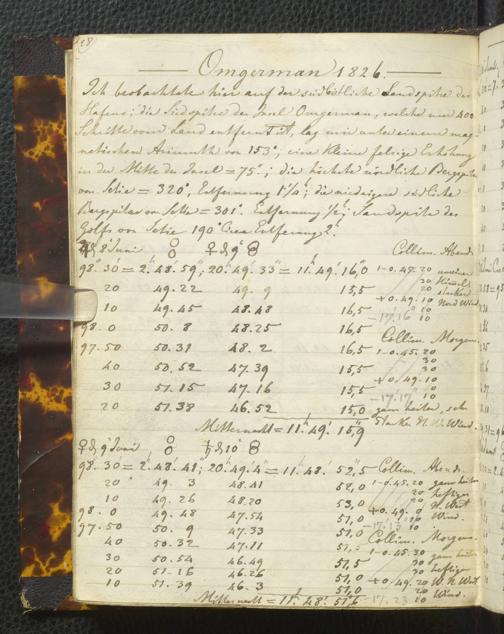 Ms. Ff. E. Rüppell I - Original Manuscript der auf meinen Reisen in Africa in den Jahren 1822 - 1827 gemachten astronomischen Beobachtungen. Sie sind sämmtlich theils in Zach's astronomischer Correspondenz, theils in dem Anhang zu meinen Reisen in Nubien pp. abgedruckt