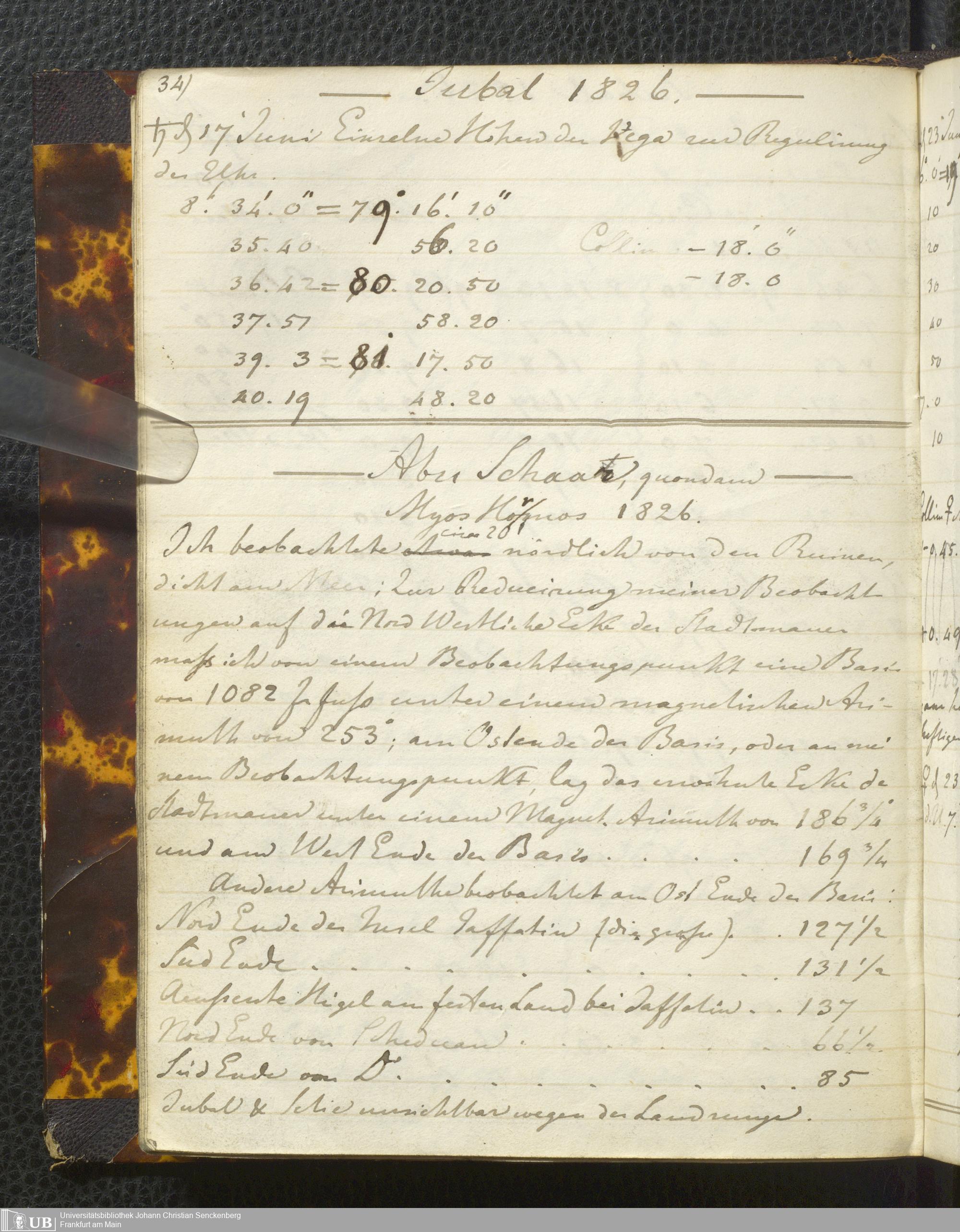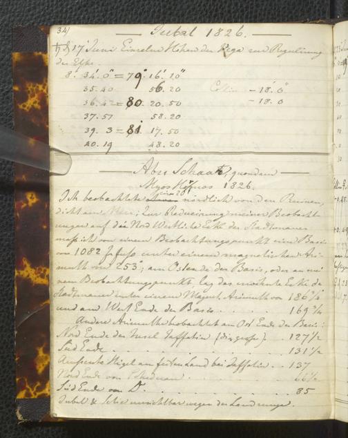 Ms. Ff. E. Rüppell I - Original Manuscript der auf meinen Reisen in Africa in den Jahren 1822 - 1827 gemachten astronomischen Beobachtungen. Sie sind sämmtlich theils in Zach's astronomischer Correspondenz, theils in dem Anhang zu meinen Reisen in Nubien pp. abgedruckt