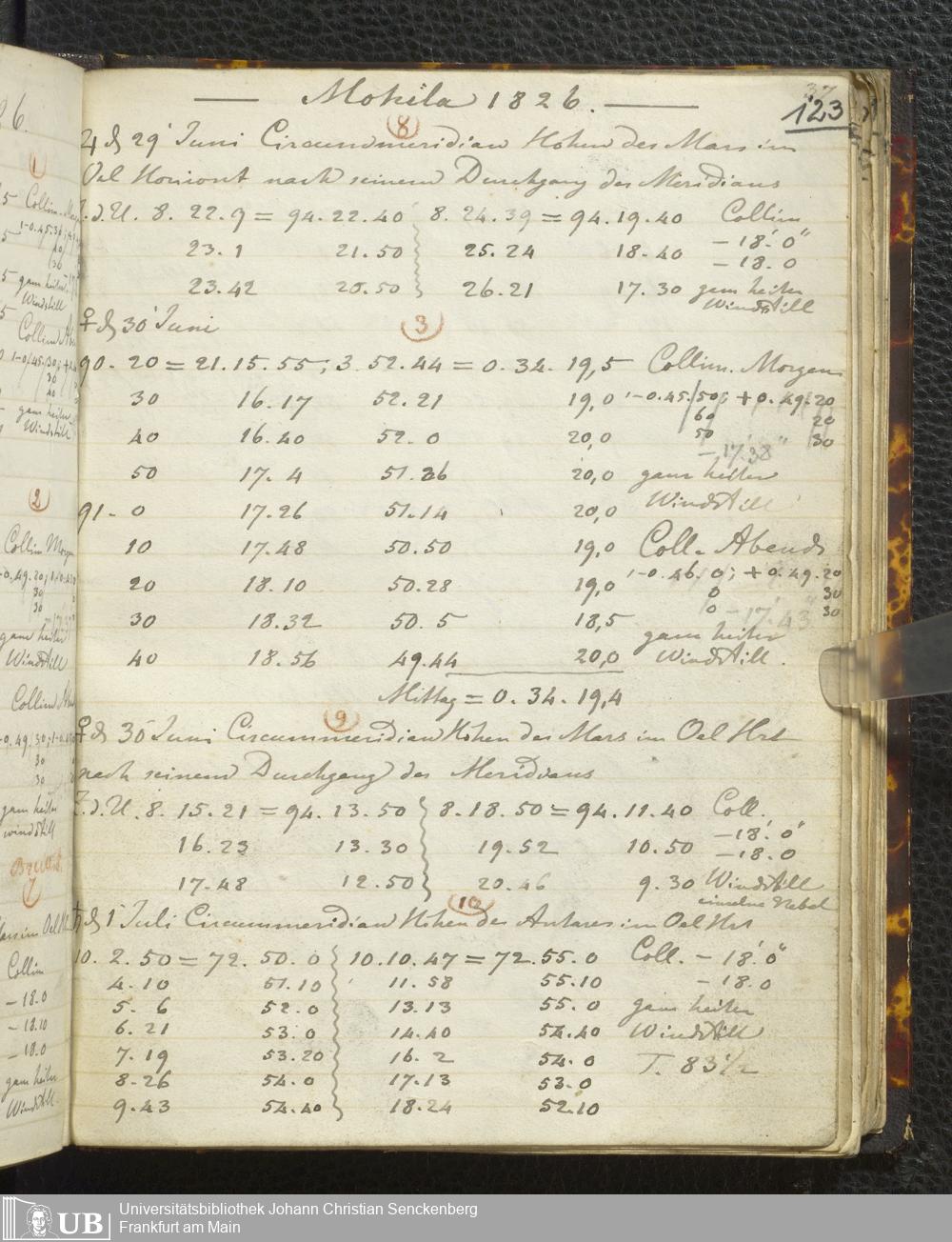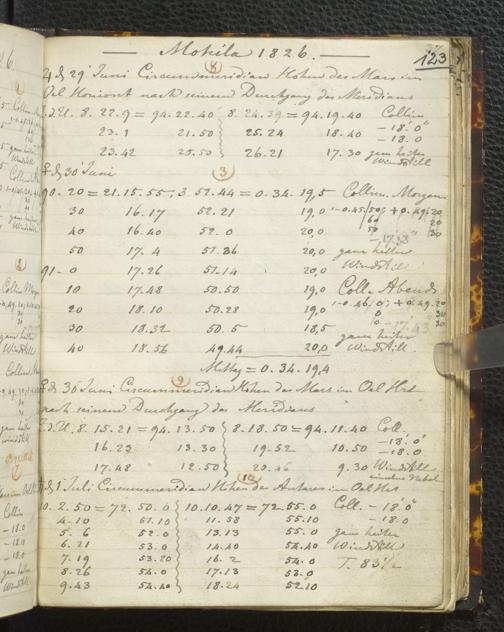 Ms. Ff. E. Rüppell I - Original Manuscript der auf meinen Reisen in Africa in den Jahren 1822 - 1827 gemachten astronomischen Beobachtungen. Sie sind sämmtlich theils in Zach's astronomischer Correspondenz, theils in dem Anhang zu meinen Reisen in Nubien pp. abgedruckt