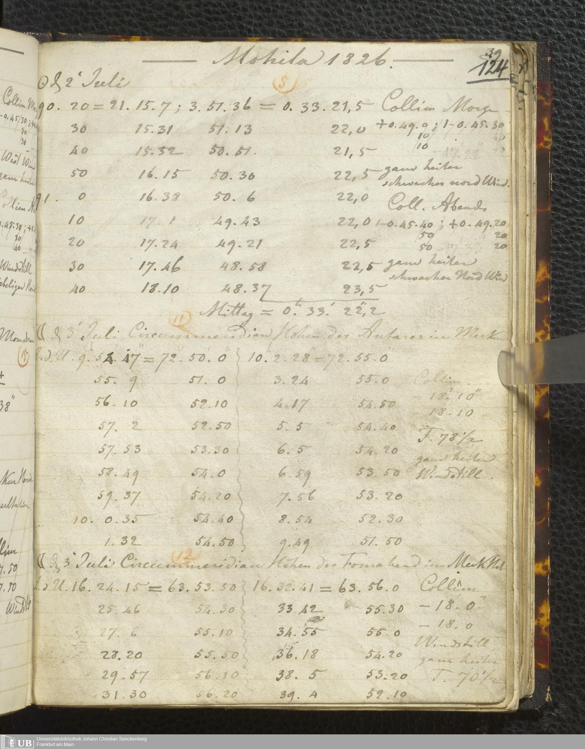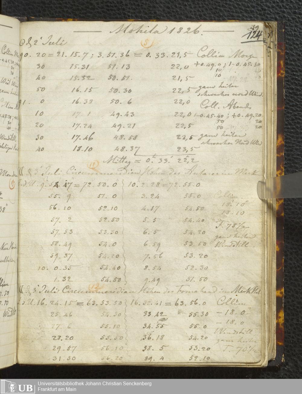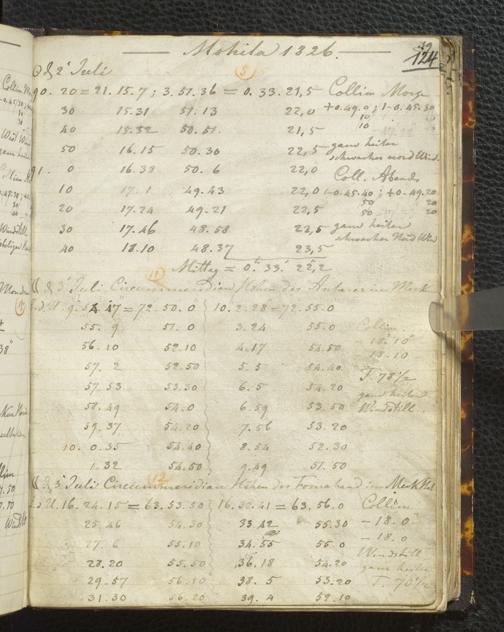 Ms. Ff. E. Rüppell I - Original Manuscript der auf meinen Reisen in Africa in den Jahren 1822 - 1827 gemachten astronomischen Beobachtungen. Sie sind sämmtlich theils in Zach's astronomischer Correspondenz, theils in dem Anhang zu meinen Reisen in Nubien pp. abgedruckt