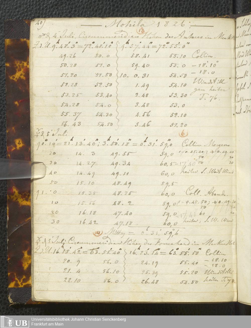 Ms. Ff. E. Rüppell I - Original Manuscript der auf meinen Reisen in Africa in den Jahren 1822 - 1827 gemachten astronomischen Beobachtungen. Sie sind sämmtlich theils in Zach's astronomischer Correspondenz, theils in dem Anhang zu meinen Reisen in Nubien pp. abgedruckt