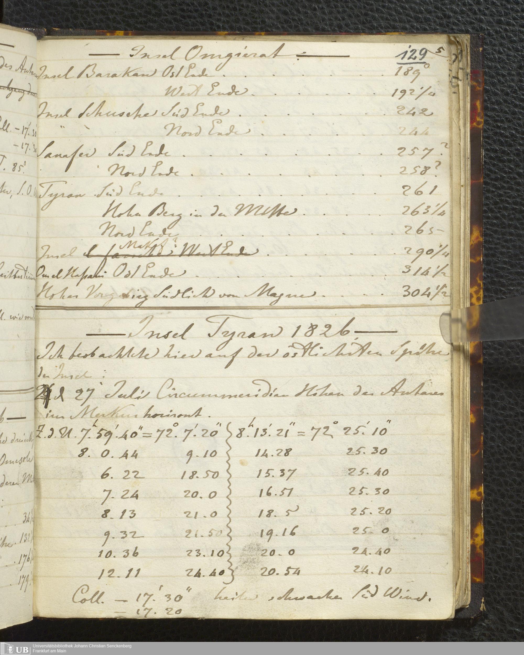 Ms. Ff. E. Rüppell I - Original Manuscript der auf meinen Reisen in Africa in den Jahren 1822 - 1827 gemachten astronomischen Beobachtungen. Sie sind sämmtlich theils in Zach's astronomischer Correspondenz, theils in dem Anhang zu meinen Reisen in Nubien pp. abgedruckt