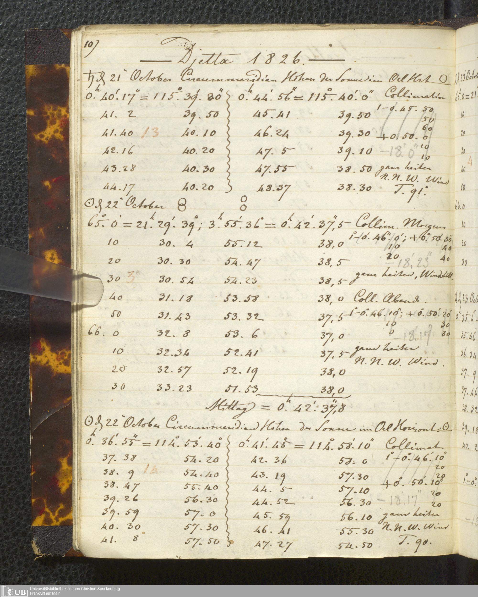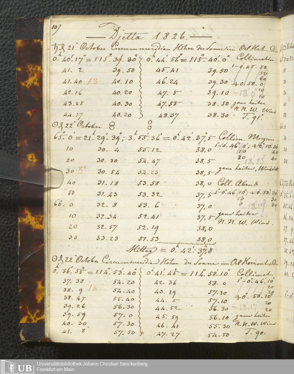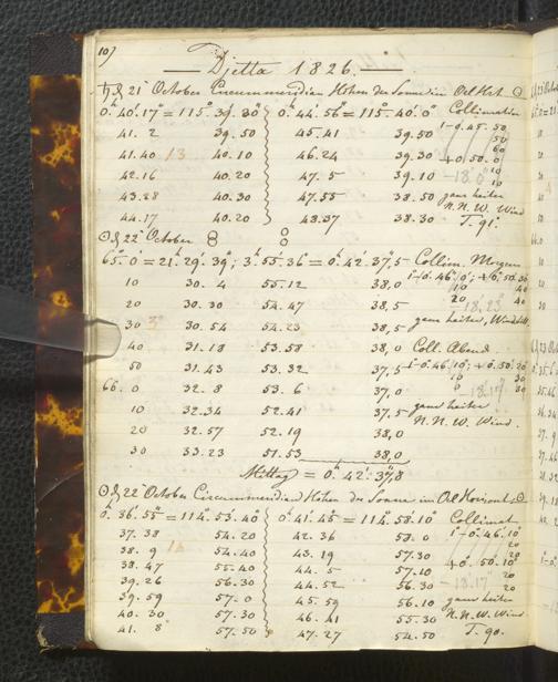 Ms. Ff. E. Rüppell I - Original Manuscript der auf meinen Reisen in Africa in den Jahren 1822 - 1827 gemachten astronomischen Beobachtungen. Sie sind sämmtlich theils in Zach's astronomischer Correspondenz, theils in dem Anhang zu meinen Reisen in Nubien pp. abgedruckt