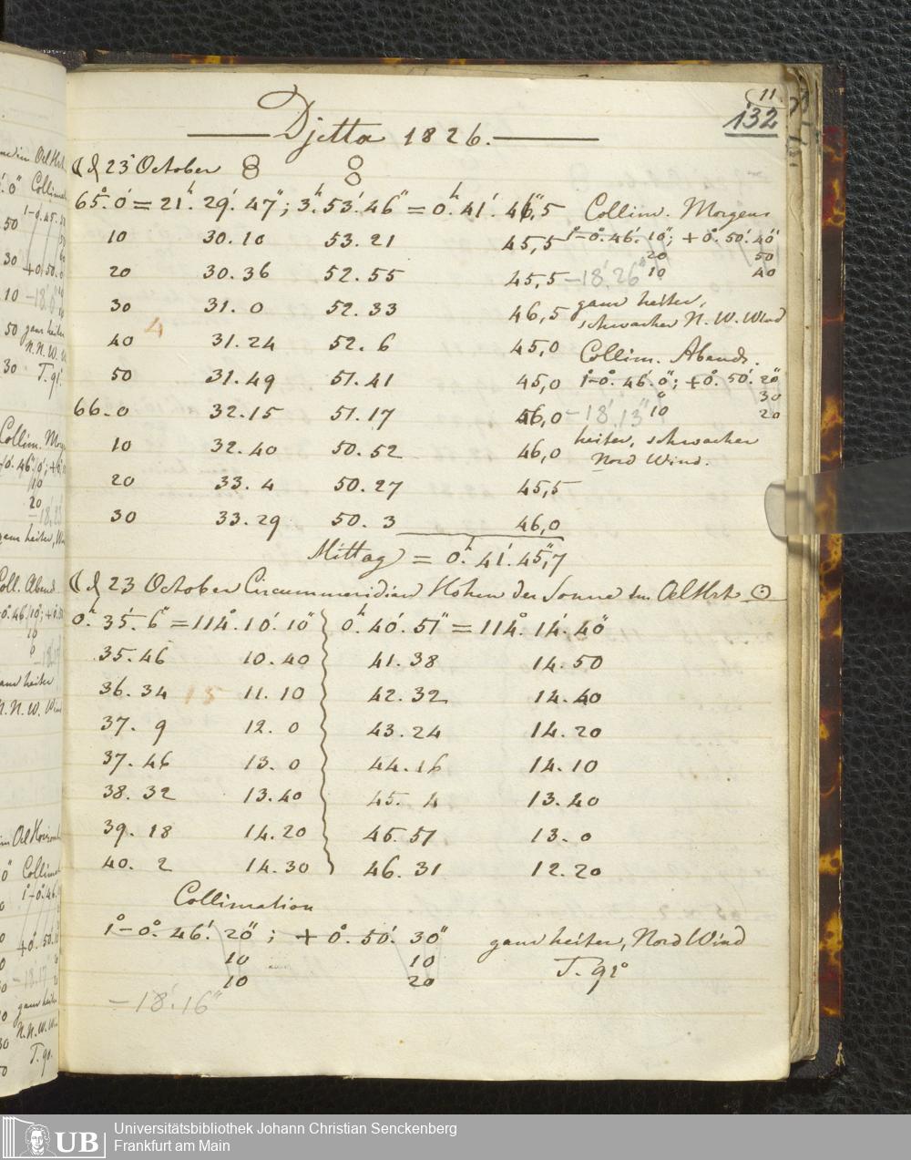 Ms. Ff. E. Rüppell I - Original Manuscript der auf meinen Reisen in Africa in den Jahren 1822 - 1827 gemachten astronomischen Beobachtungen. Sie sind sämmtlich theils in Zach's astronomischer Correspondenz, theils in dem Anhang zu meinen Reisen in Nubien pp. abgedruckt