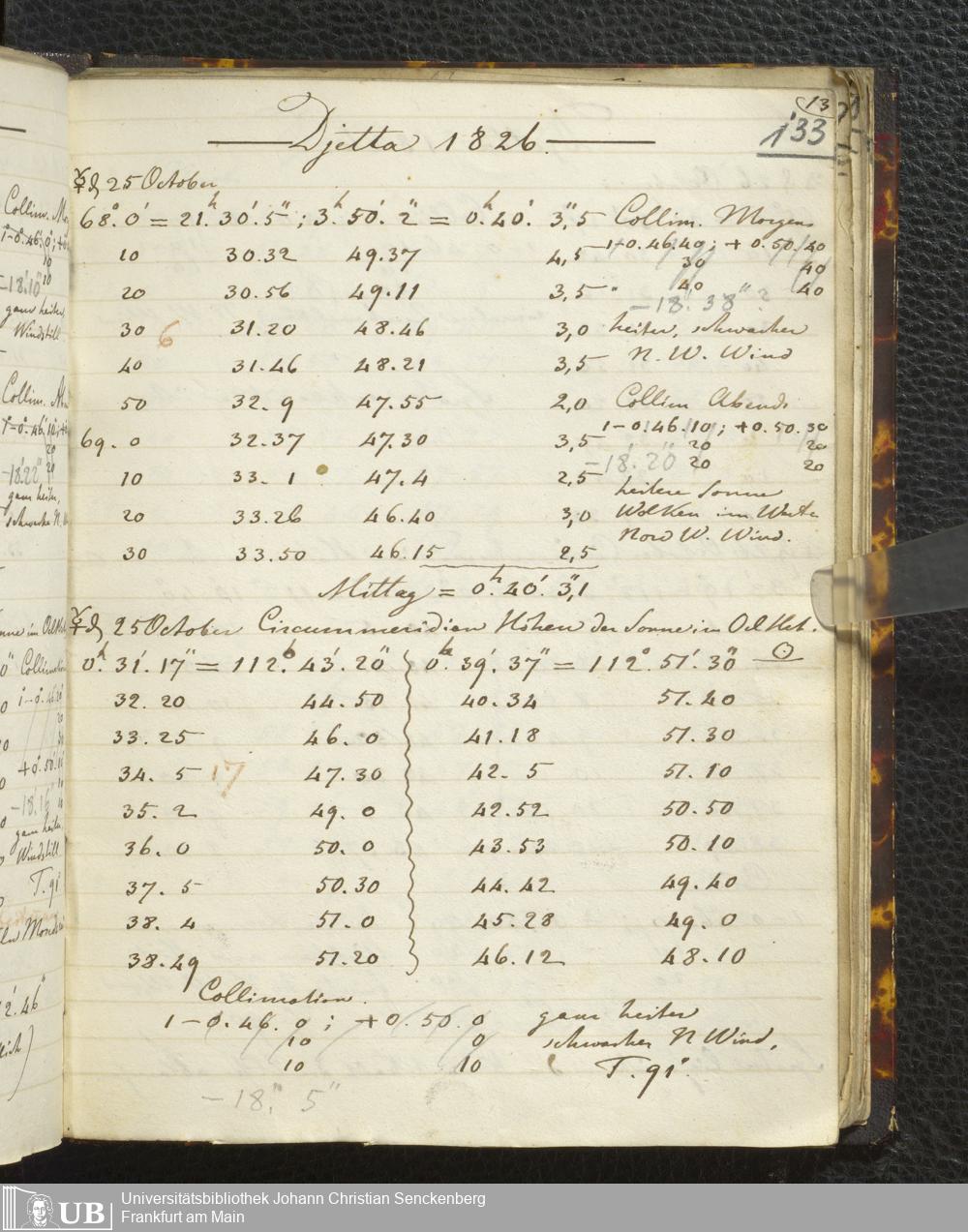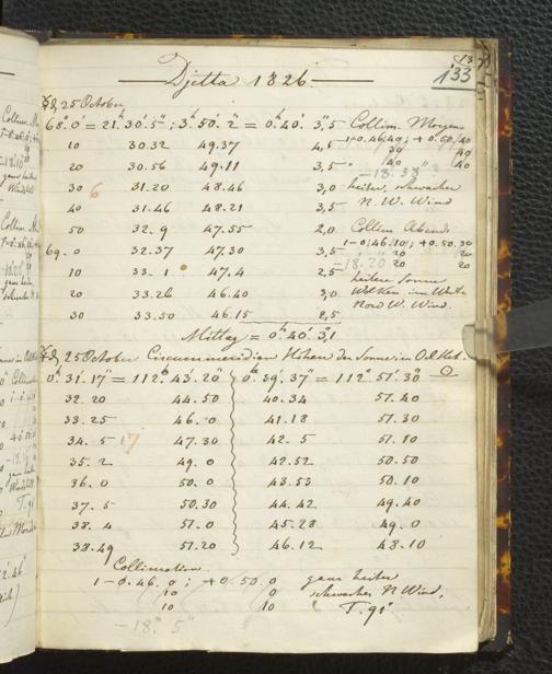 Ms. Ff. E. Rüppell I - Original Manuscript der auf meinen Reisen in Africa in den Jahren 1822 - 1827 gemachten astronomischen Beobachtungen. Sie sind sämmtlich theils in Zach's astronomischer Correspondenz, theils in dem Anhang zu meinen Reisen in Nubien pp. abgedruckt