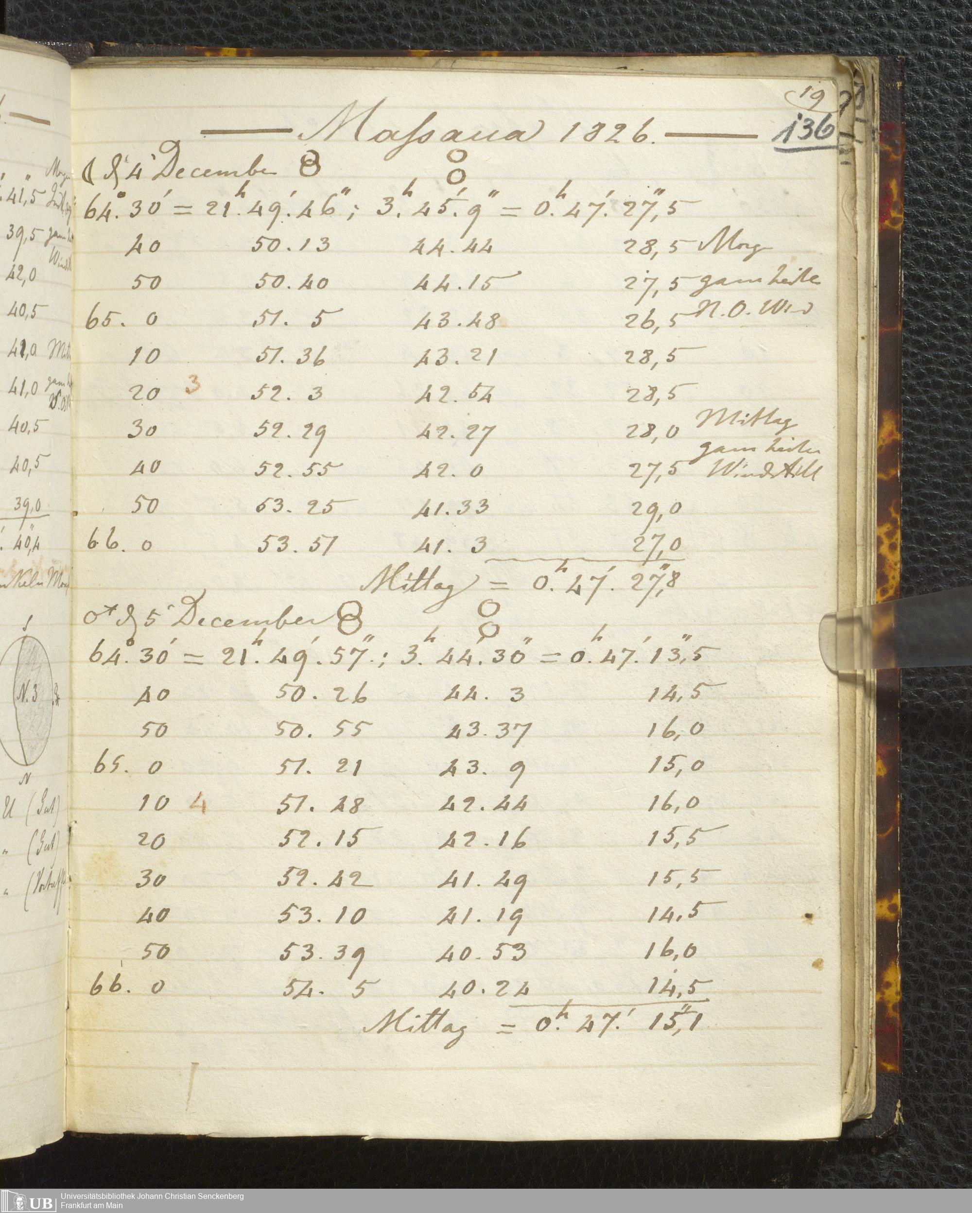 Ms. Ff. E. Rüppell I - Original Manuscript der auf meinen Reisen in Africa in den Jahren 1822 - 1827 gemachten astronomischen Beobachtungen. Sie sind sämmtlich theils in Zach's astronomischer Correspondenz, theils in dem Anhang zu meinen Reisen in Nubien pp. abgedruckt