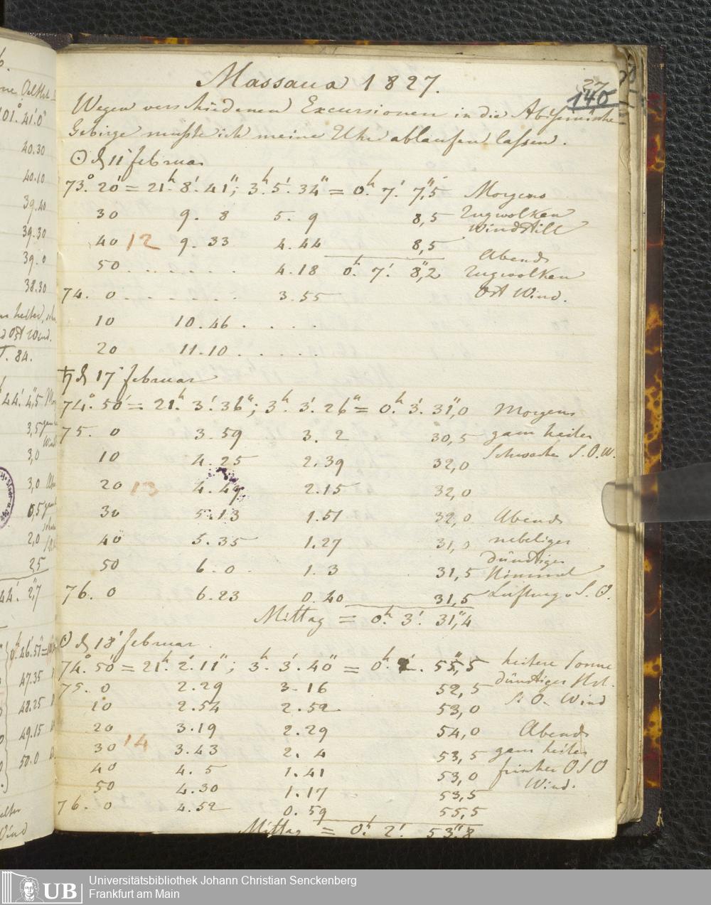 Ms. Ff. E. Rüppell I - Original Manuscript der auf meinen Reisen in Africa in den Jahren 1822 - 1827 gemachten astronomischen Beobachtungen. Sie sind sämmtlich theils in Zach's astronomischer Correspondenz, theils in dem Anhang zu meinen Reisen in Nubien pp. abgedruckt