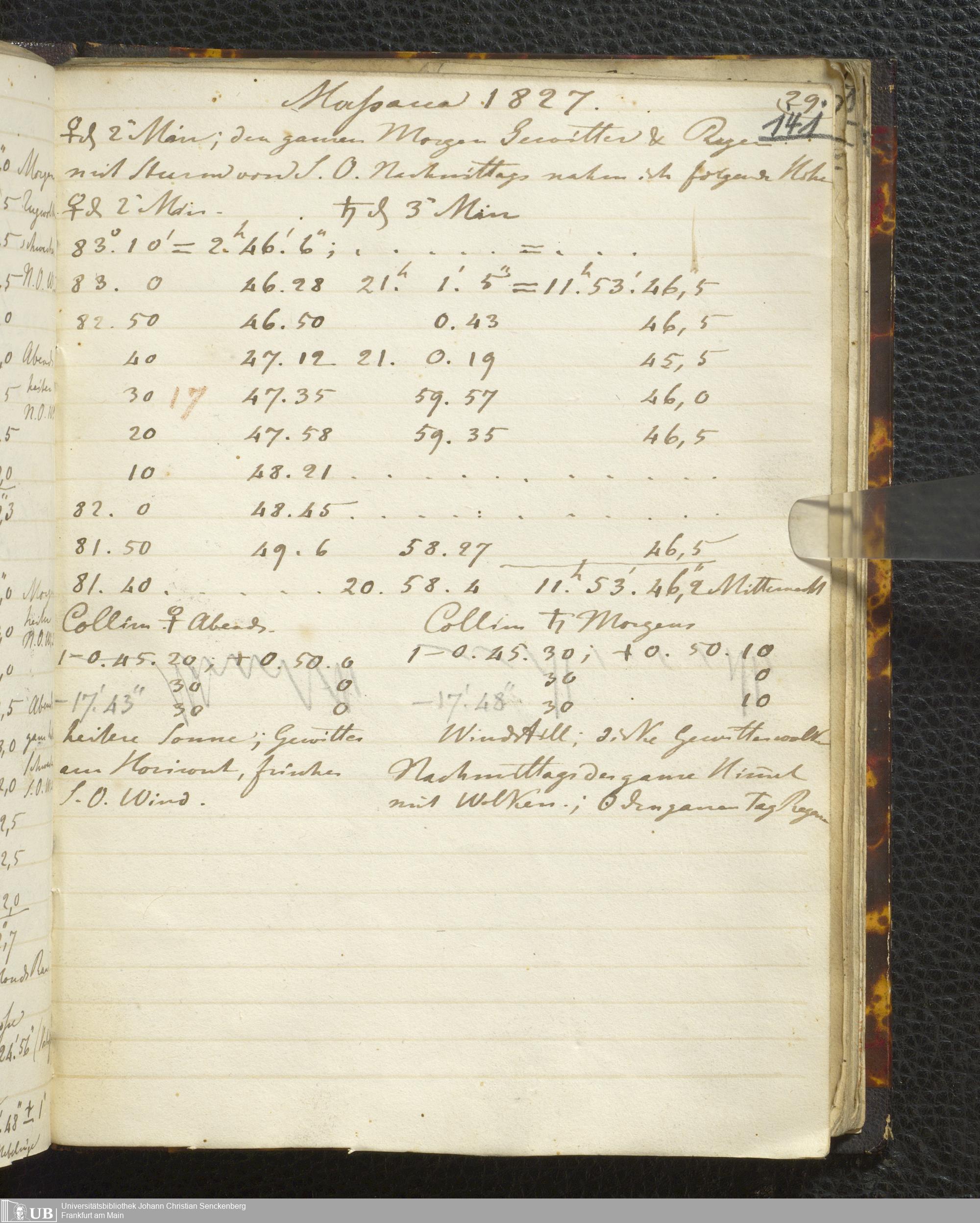 Ms. Ff. E. Rüppell I - Original Manuscript der auf meinen Reisen in Africa in den Jahren 1822 - 1827 gemachten astronomischen Beobachtungen. Sie sind sämmtlich theils in Zach's astronomischer Correspondenz, theils in dem Anhang zu meinen Reisen in Nubien pp. abgedruckt