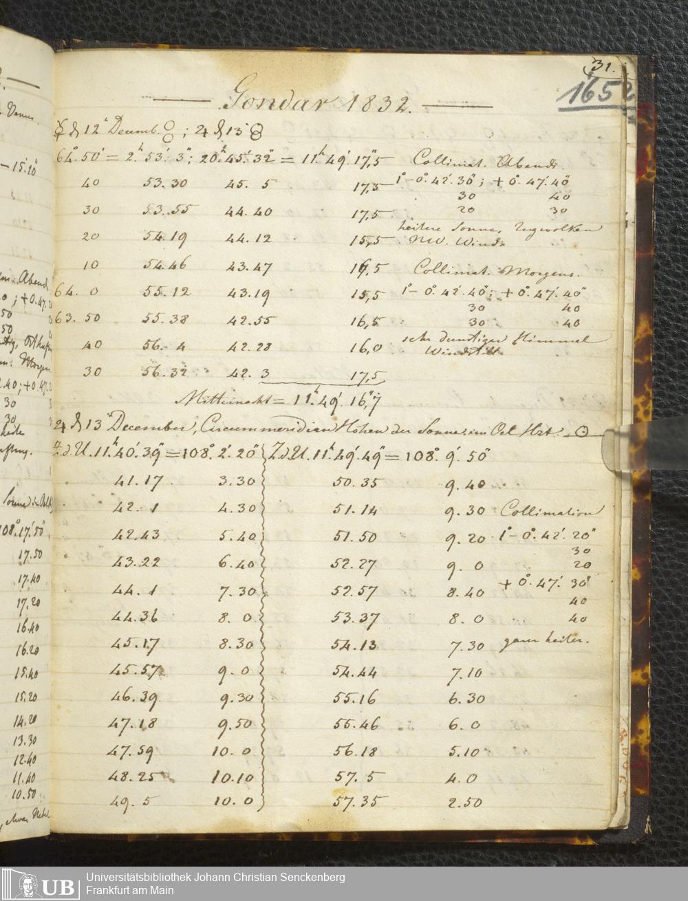 Ms. Ff. E. Rüppell I - Original Manuscript der auf meinen Reisen in Africa in den Jahren 1822 - 1827 gemachten astronomischen Beobachtungen. Sie sind sämmtlich theils in Zach's astronomischer Correspondenz, theils in dem Anhang zu meinen Reisen in Nubien pp. abgedruckt