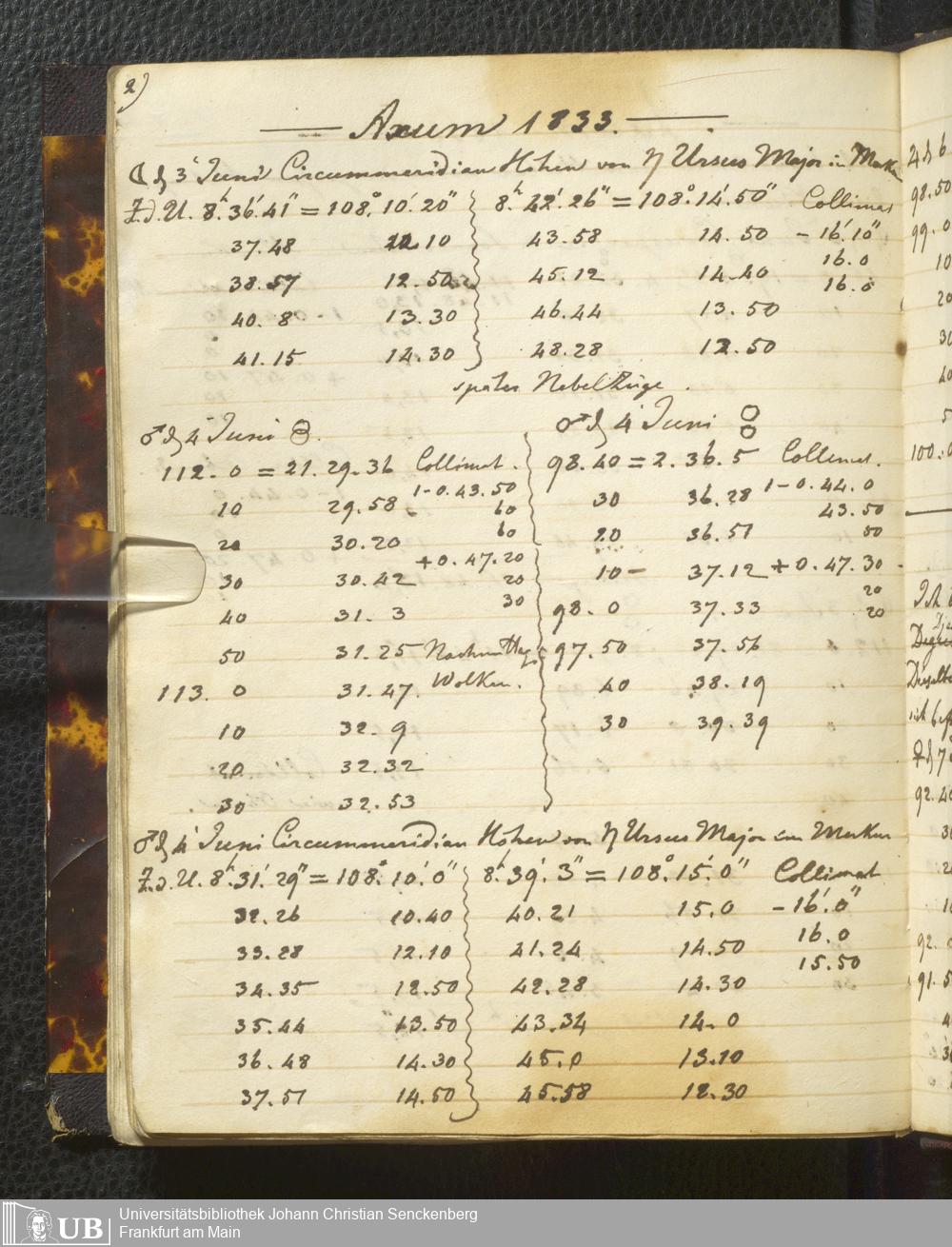 Ms. Ff. E. Rüppell I - Original Manuscript der auf meinen Reisen in Africa in den Jahren 1822 - 1827 gemachten astronomischen Beobachtungen. Sie sind sämmtlich theils in Zach's astronomischer Correspondenz, theils in dem Anhang zu meinen Reisen in Nubien pp. abgedruckt