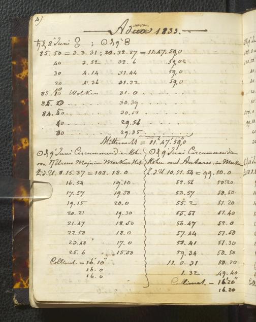 Ms. Ff. E. Rüppell I - Original Manuscript der auf meinen Reisen in Africa in den Jahren 1822 - 1827 gemachten astronomischen Beobachtungen. Sie sind sämmtlich theils in Zach's astronomischer Correspondenz, theils in dem Anhang zu meinen Reisen in Nubien pp. abgedruckt
