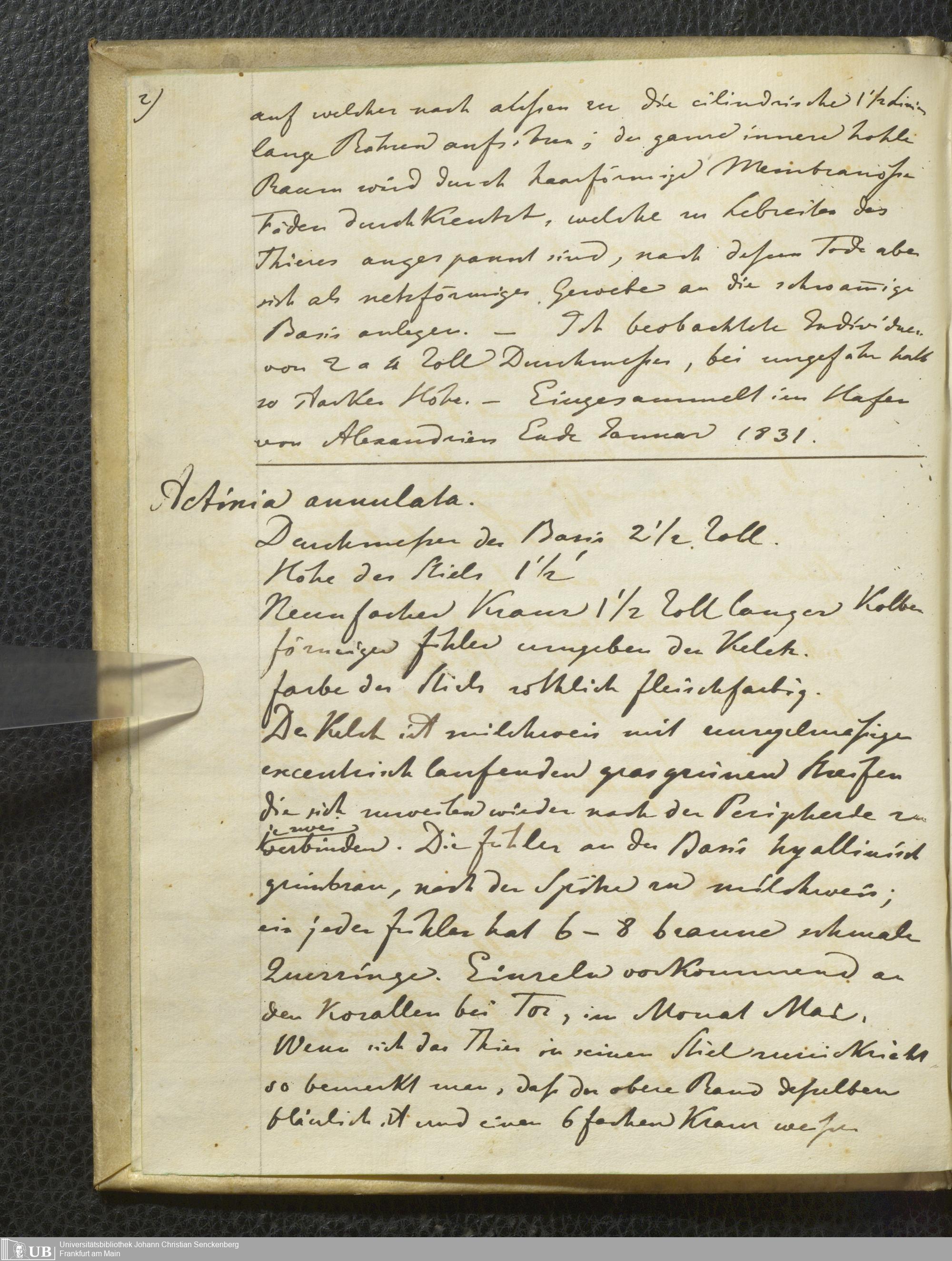 8° Hs 2 Bd. 1 - Verzeichnis von Anneliden, Crustaceen, Zoophiten, Mollusken, Säugetieren, Vögeln, Amphibien und Fischen Nord-Afrikas