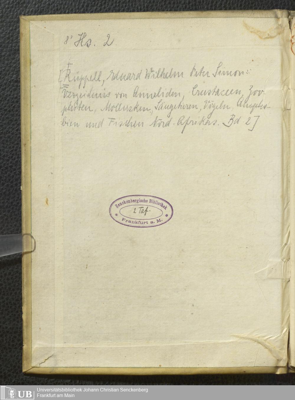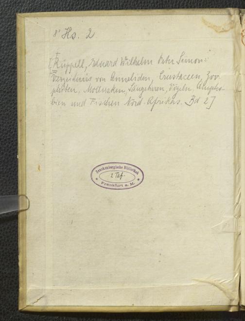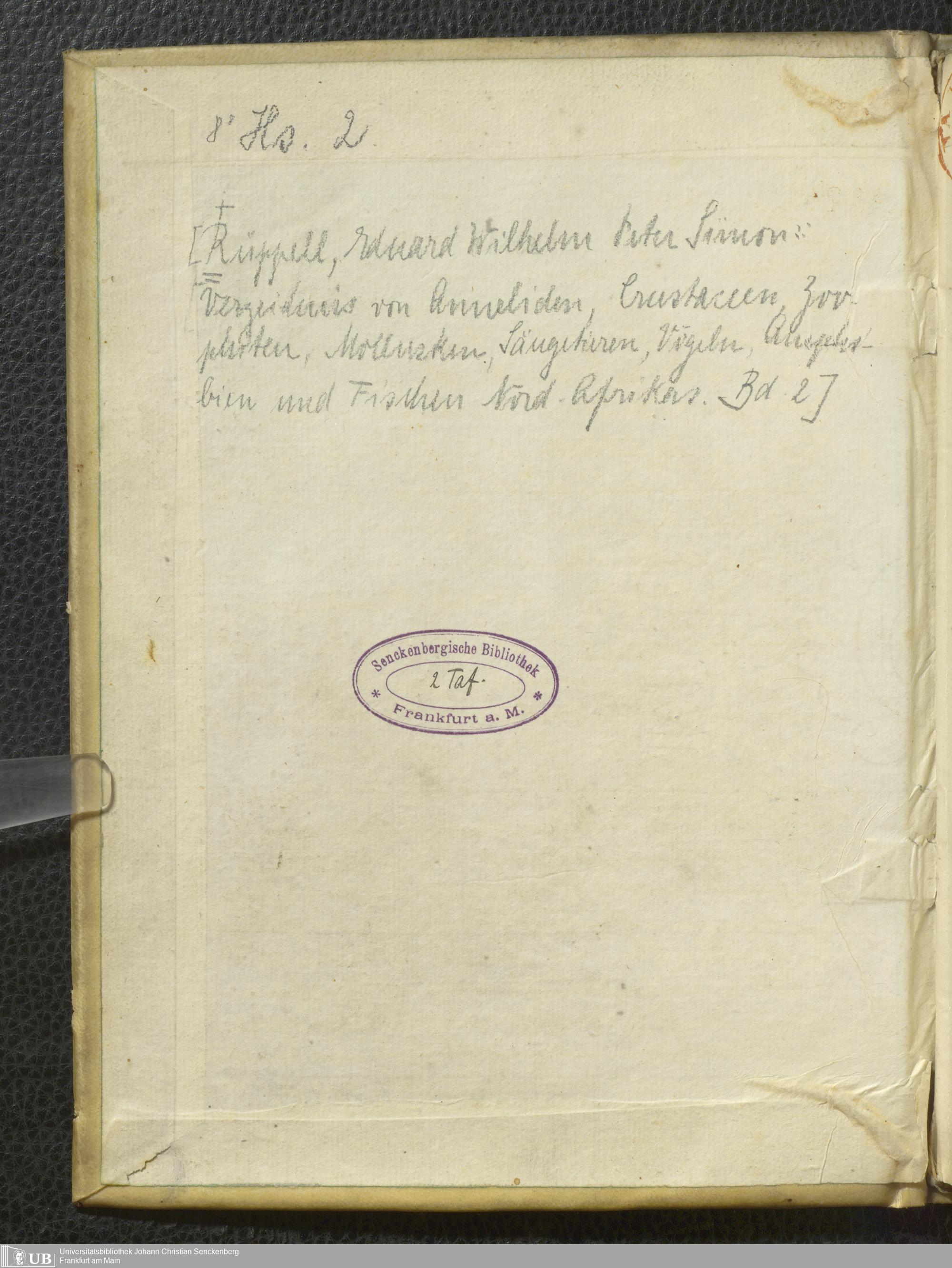 8° Hs 2 Bd. 2 - Verzeichnis von Anneliden, Crustaceen, Zoophiten, Mollusken, Säugetieren, Vögeln, Amphibien und Fischen Nord-Afrikas