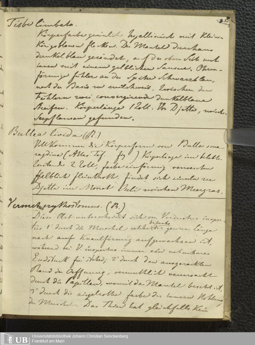 8° Hs 2 Bd. 2 - Verzeichnis von Anneliden, Crustaceen, Zoophiten, Mollusken, Säugetieren, Vögeln, Amphibien und Fischen Nord-Afrikas