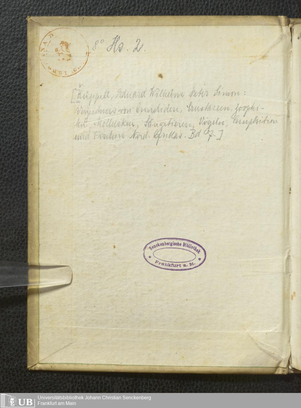 8° Hs 2 Bd. 7 - Verzeichnis von Anneliden, Crustaceen, Zoophiten, Mollusken, Säugetieren, Vögeln, Amphibien und Fischen Nord-Afrikas