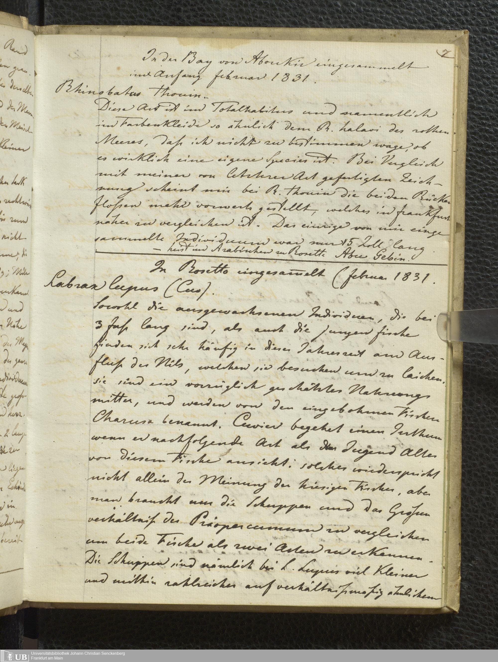 8° Hs 2 Bd. 7 - Verzeichnis von Anneliden, Crustaceen, Zoophiten, Mollusken, Säugetieren, Vögeln, Amphibien und Fischen Nord-Afrikas