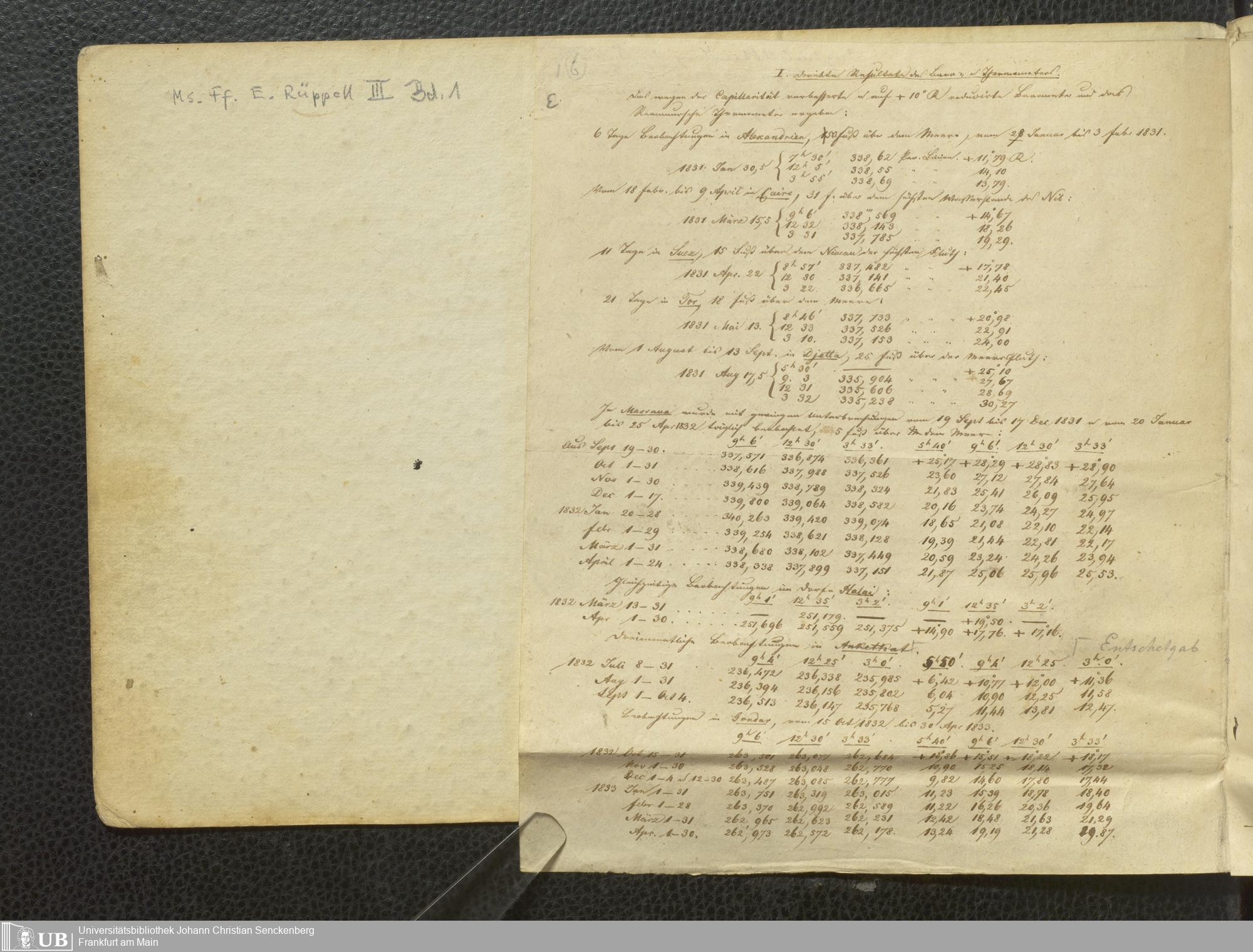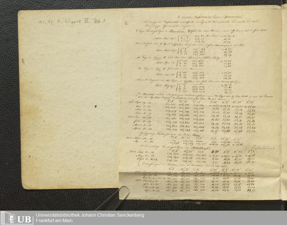 Ms. Ff. E. Rüppell III Bd. 1 - Journal der meteorologischen Beobachtungen