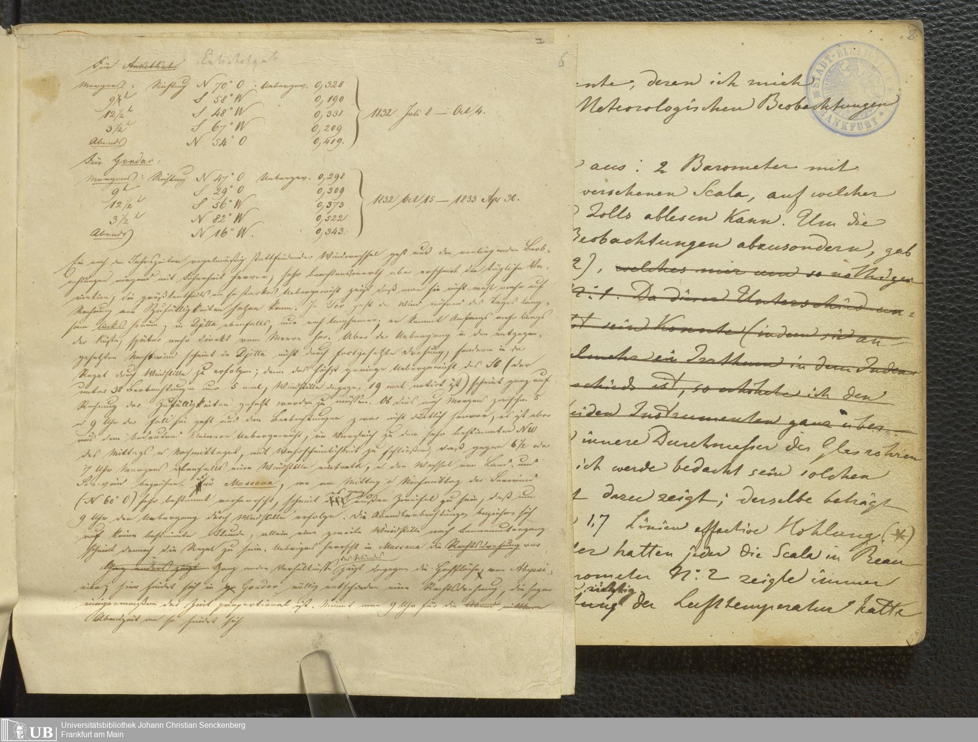 Ms. Ff. E. Rüppell III Bd. 1 - Journal der meteorologischen Beobachtungen