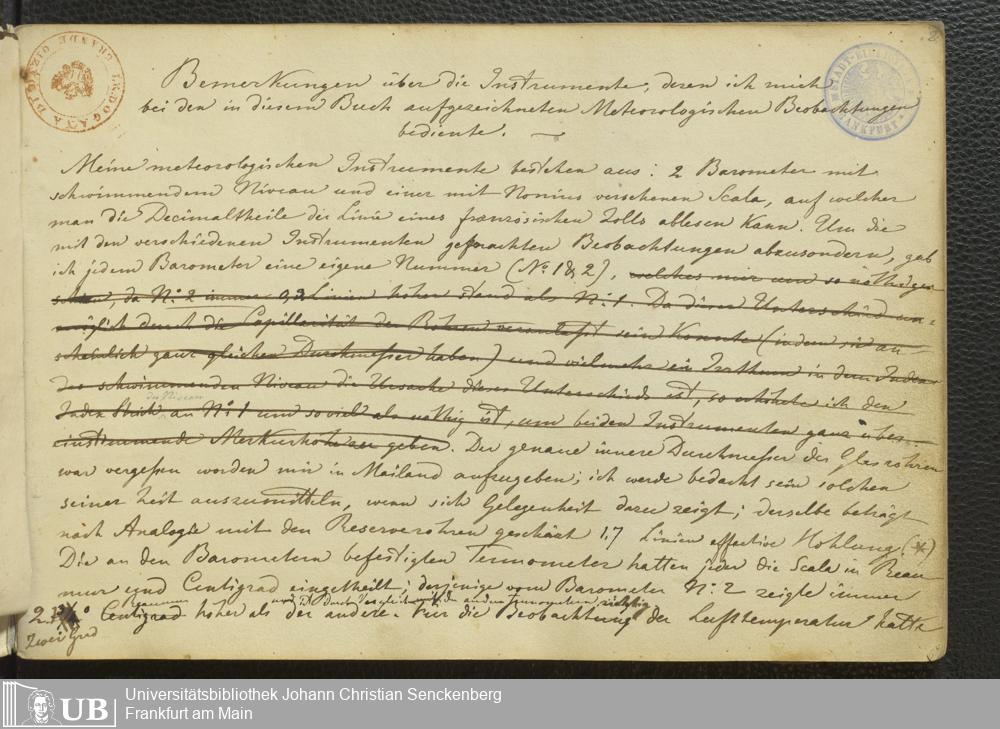 Ms. Ff. E. Rüppell III Bd. 1 - Journal der meteorologischen Beobachtungen