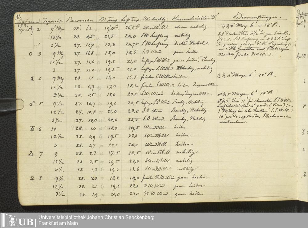 Ms. Ff. E. Rüppell III Bd. 1 - Journal der meteorologischen Beobachtungen