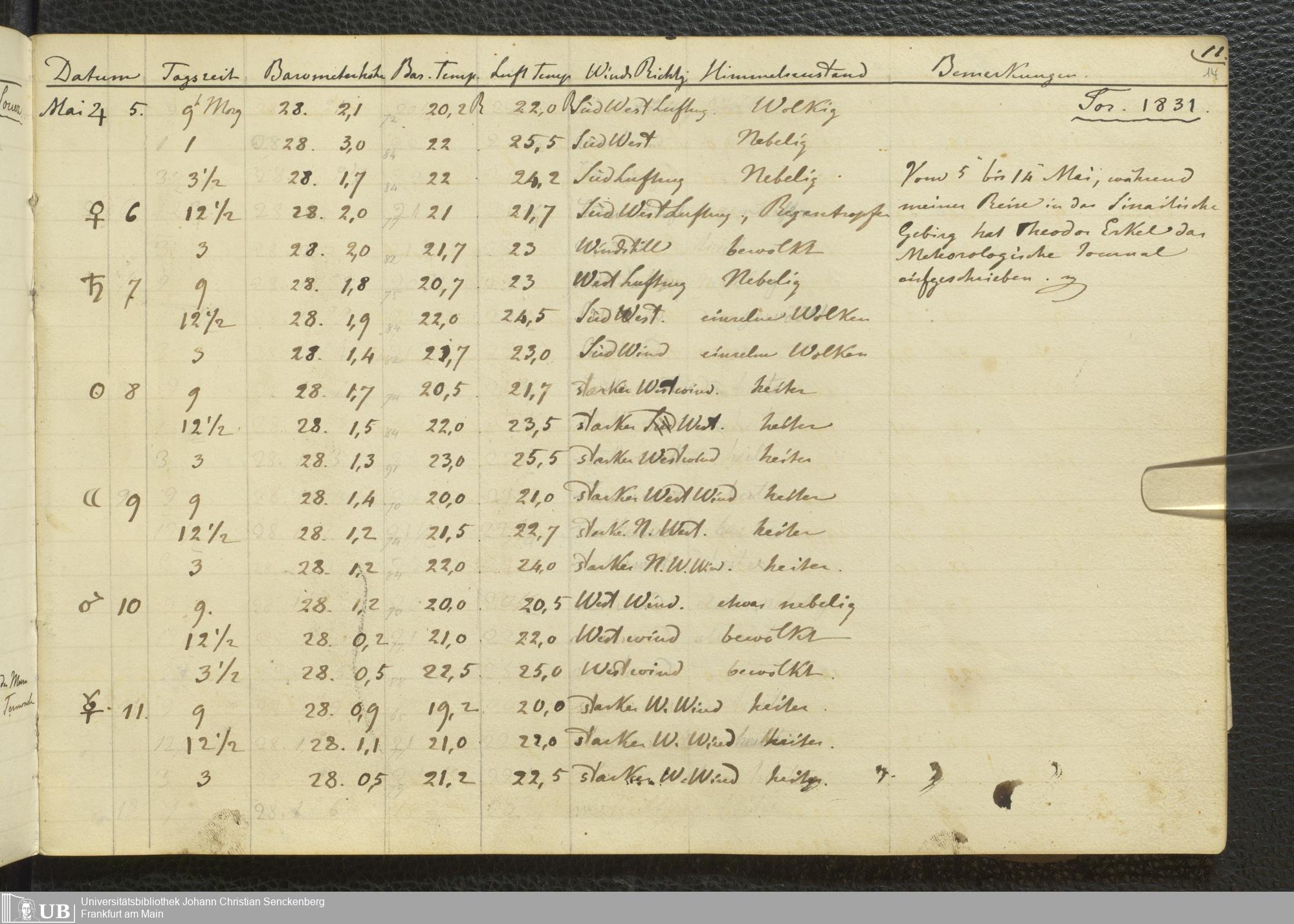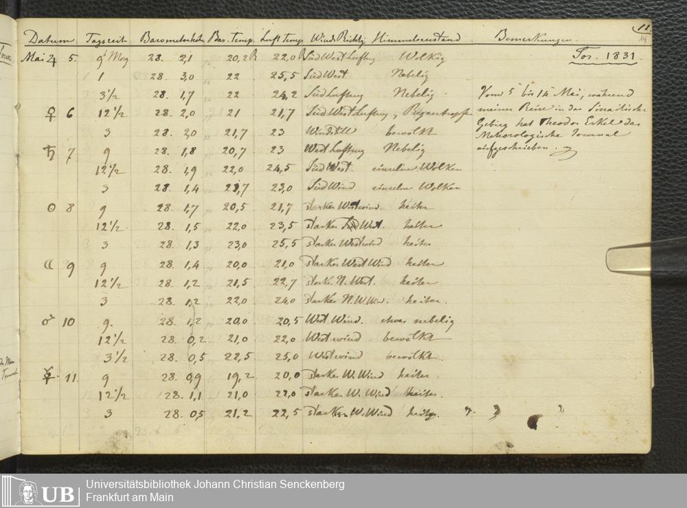 Ms. Ff. E. Rüppell III Bd. 1 - Journal der meteorologischen Beobachtungen
