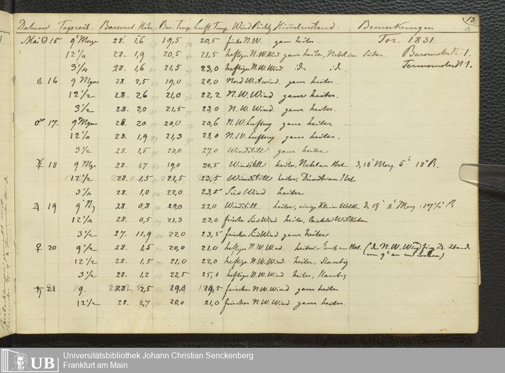 Ms. Ff. E. Rüppell III Bd. 1 - Journal der meteorologischen Beobachtungen