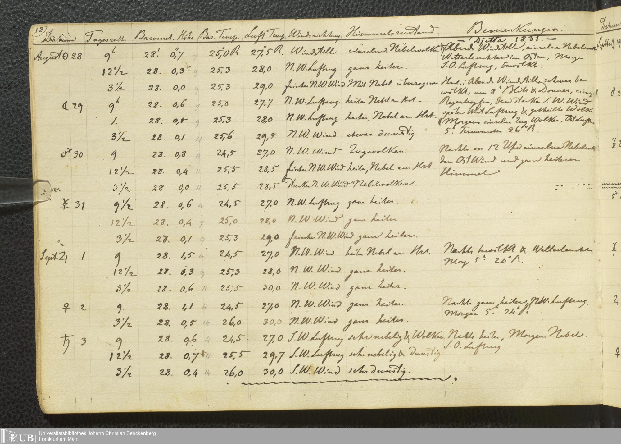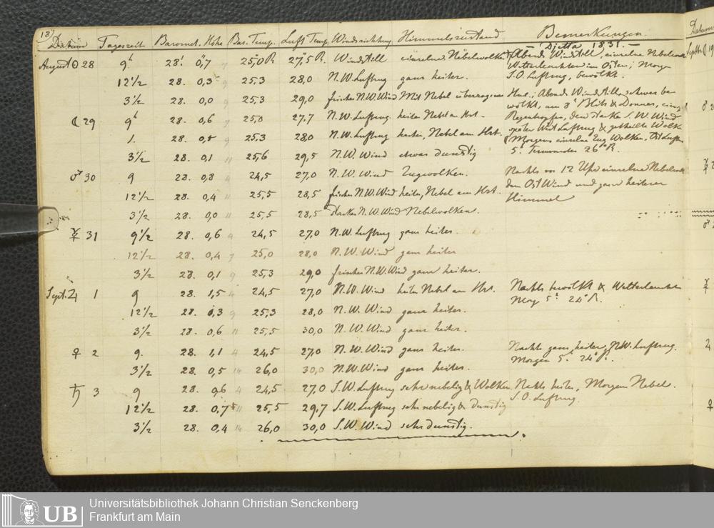 Ms. Ff. E. Rüppell III Bd. 1 - Journal der meteorologischen Beobachtungen