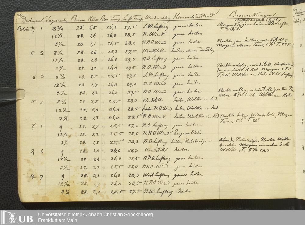 Ms. Ff. E. Rüppell III Bd. 1 - Journal der meteorologischen Beobachtungen