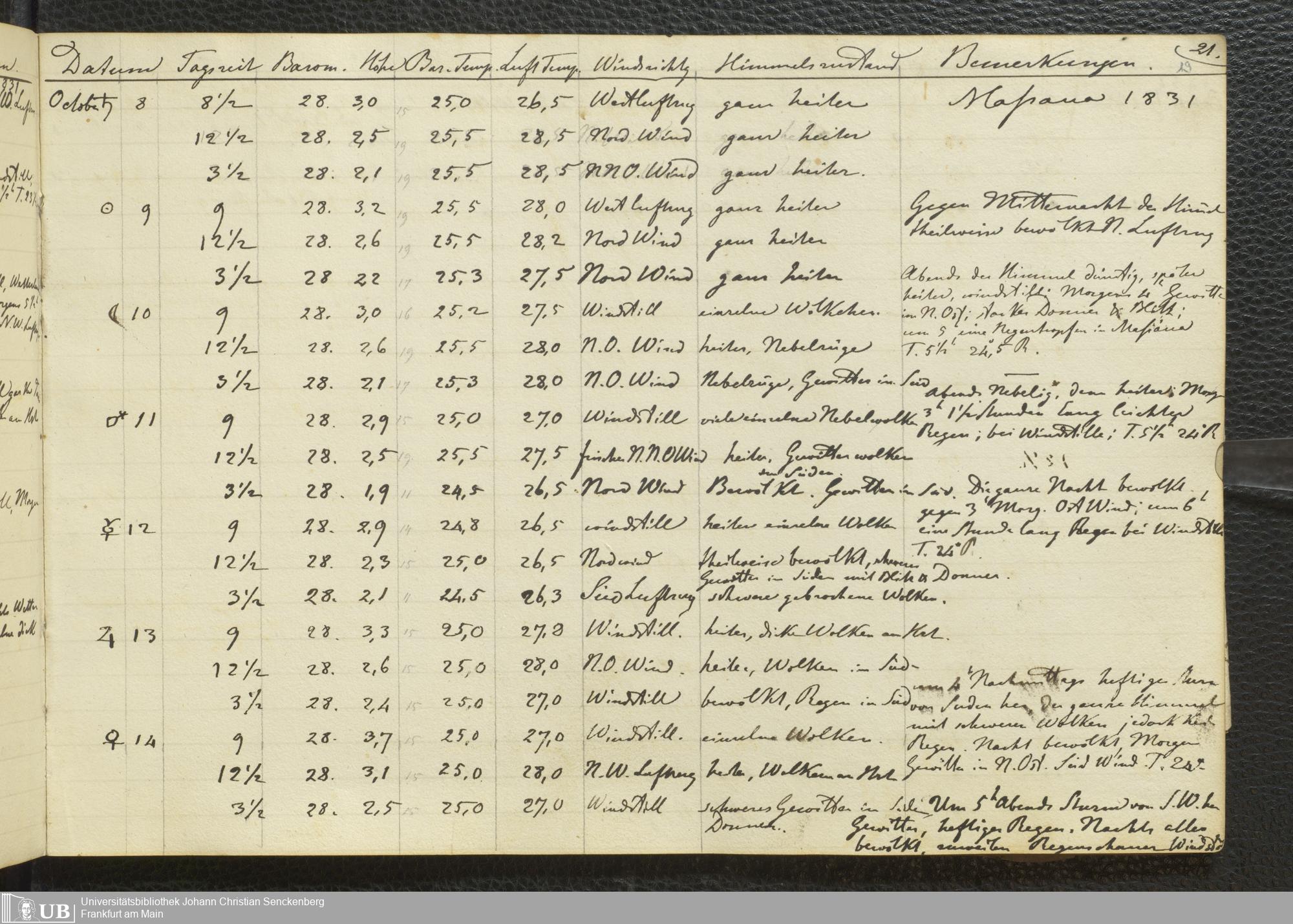 Ms. Ff. E. Rüppell III Bd. 1 - Journal der meteorologischen Beobachtungen