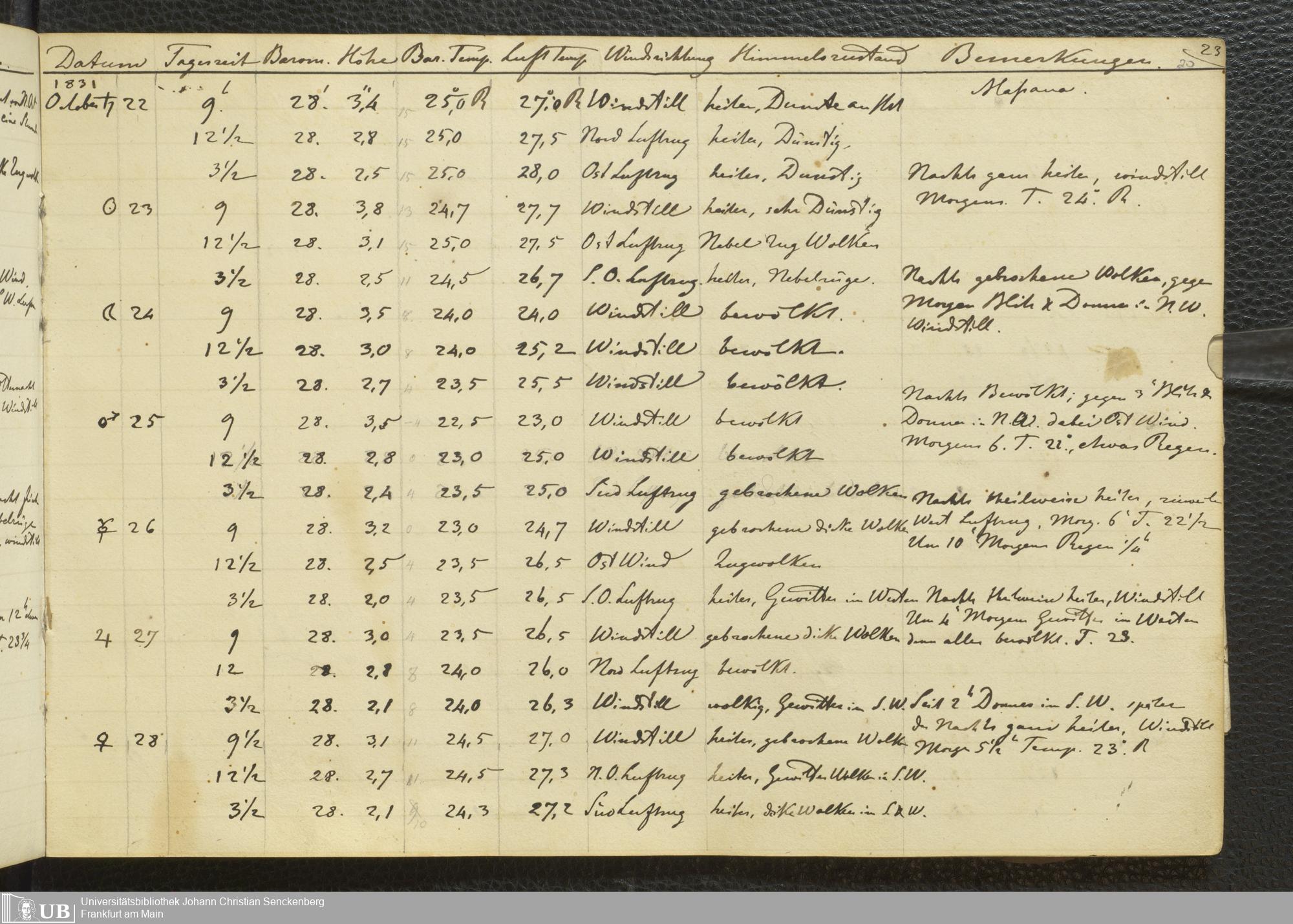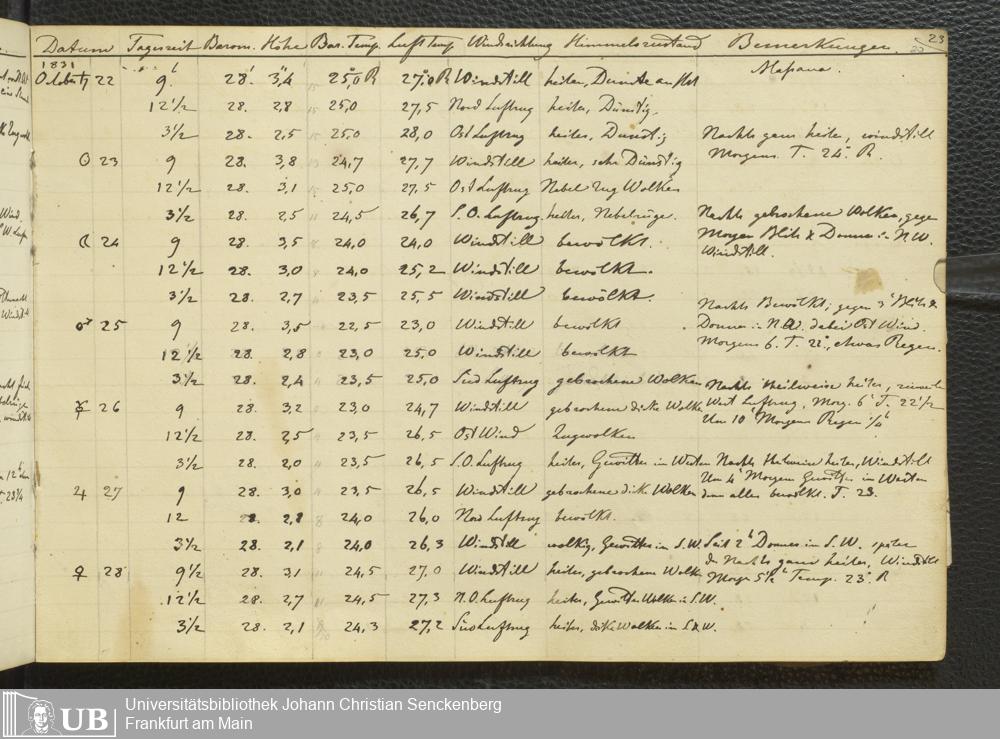 Ms. Ff. E. Rüppell III Bd. 1 - Journal der meteorologischen Beobachtungen