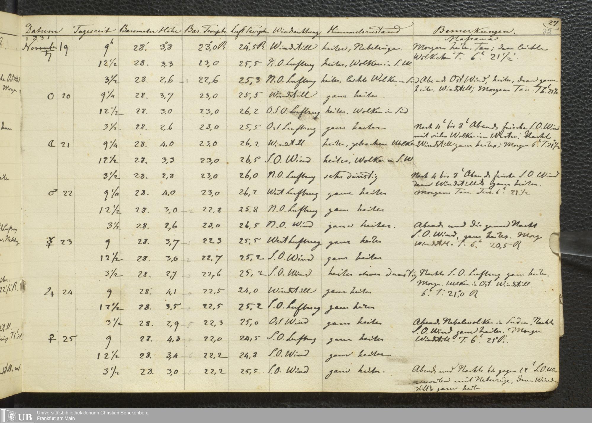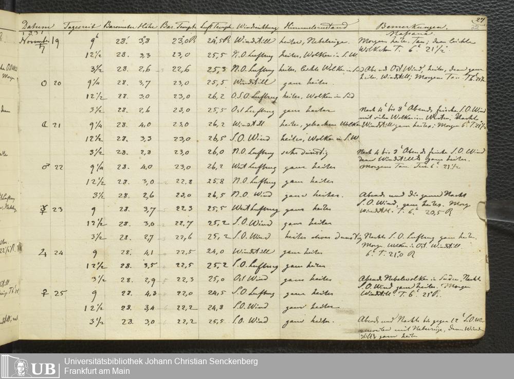 Ms. Ff. E. Rüppell III Bd. 1 - Journal der meteorologischen Beobachtungen