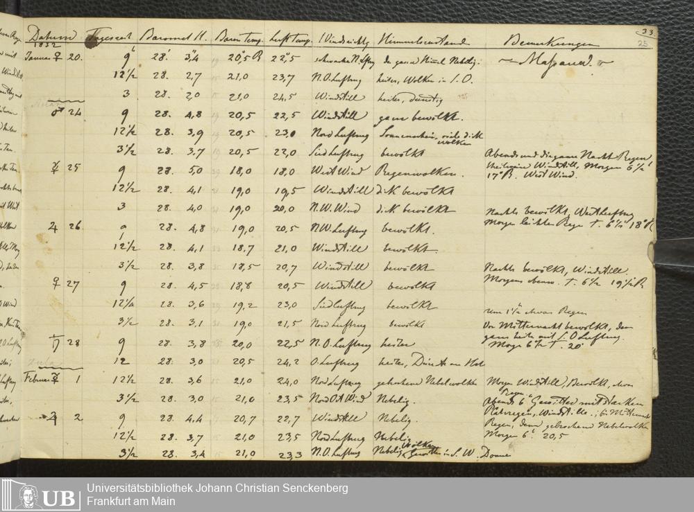 Ms. Ff. E. Rüppell III Bd. 1 - Journal der meteorologischen Beobachtungen