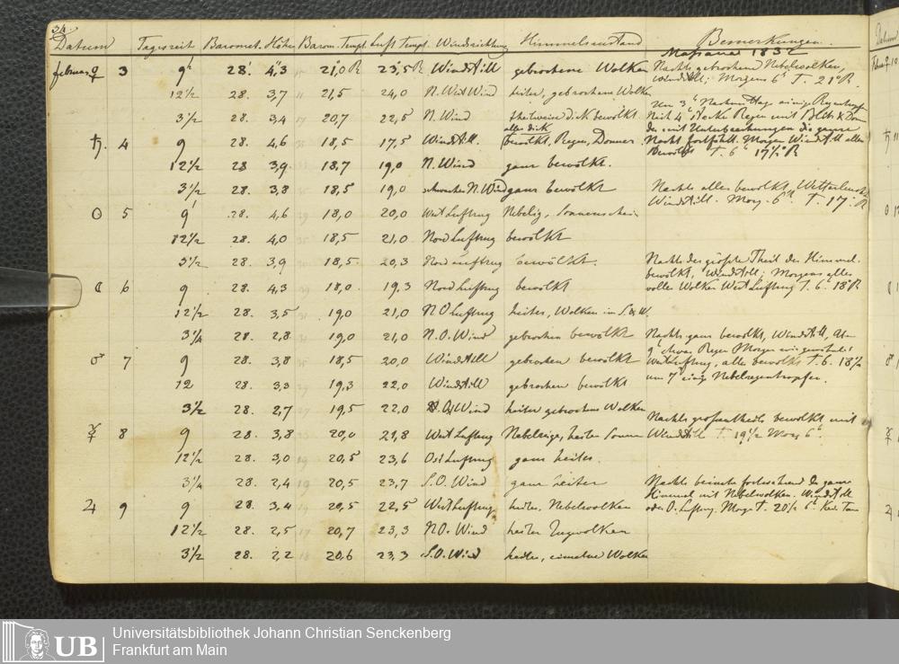 Ms. Ff. E. Rüppell III Bd. 1 - Journal der meteorologischen Beobachtungen