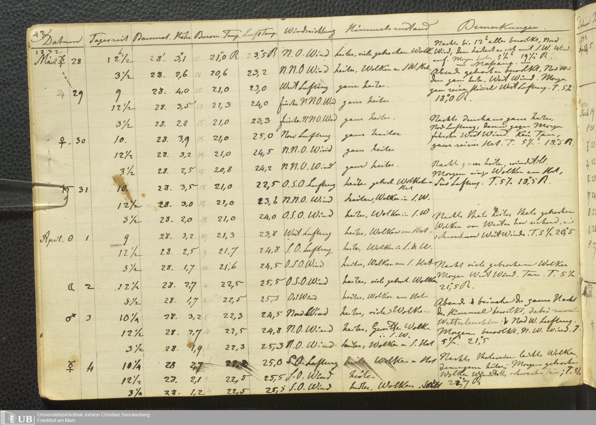 Ms. Ff. E. Rüppell III Bd. 1 - Journal der meteorologischen Beobachtungen