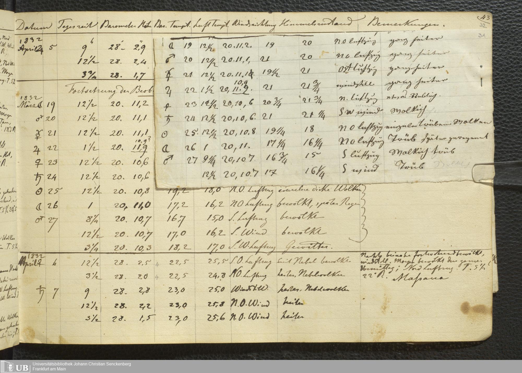 Ms. Ff. E. Rüppell III Bd. 1 - Journal der meteorologischen Beobachtungen