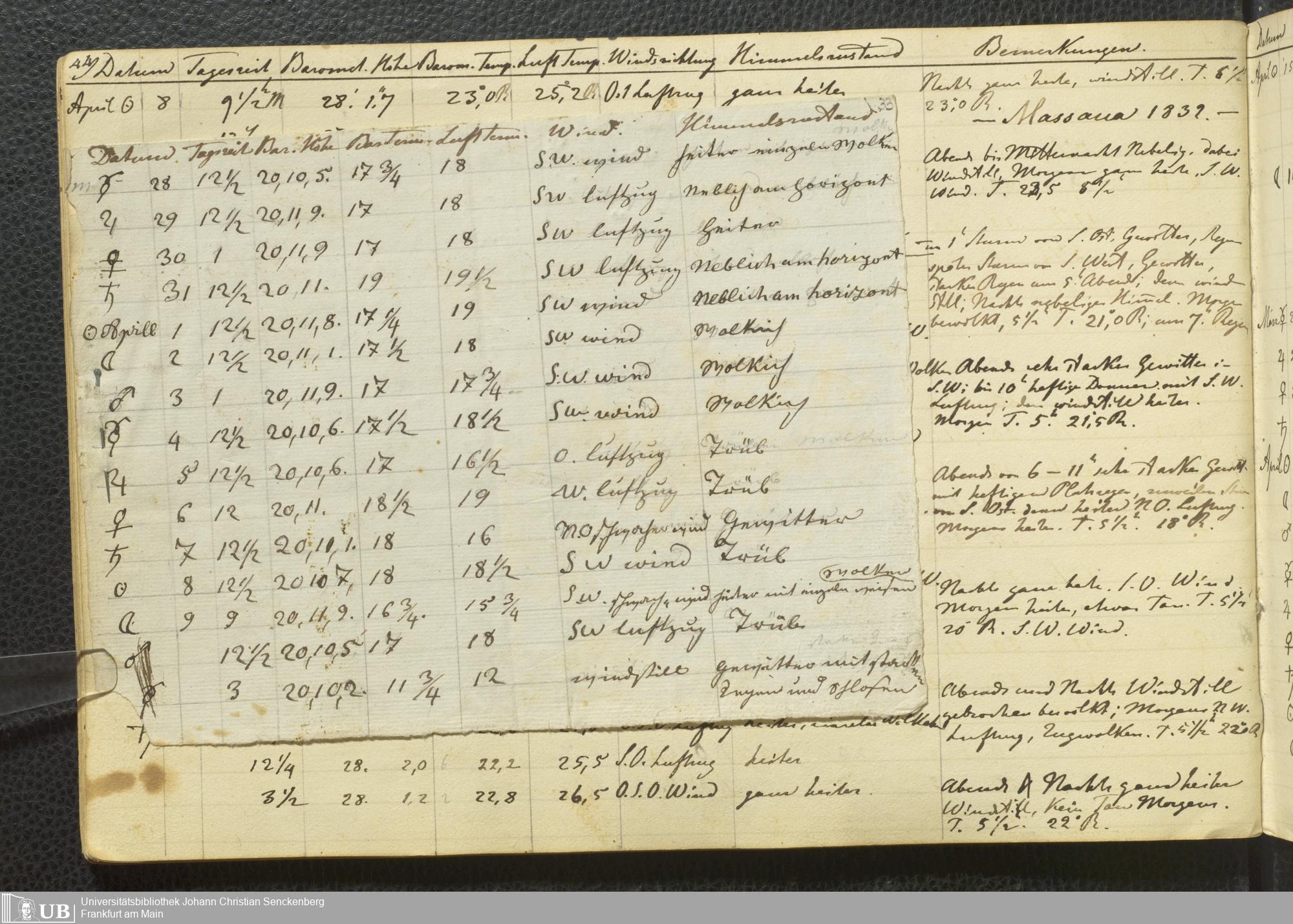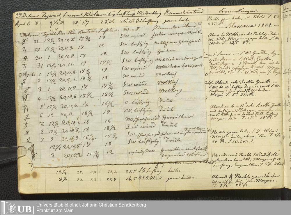 Ms. Ff. E. Rüppell III Bd. 1 - Journal der meteorologischen Beobachtungen