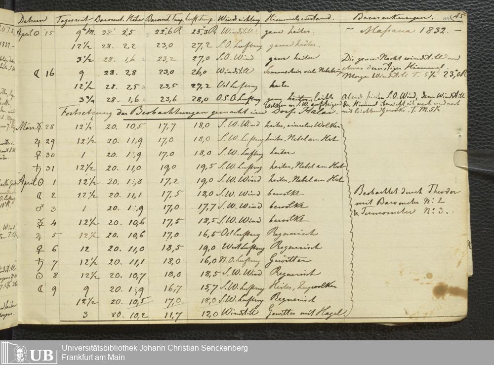 Ms. Ff. E. Rüppell III Bd. 1 - Journal der meteorologischen Beobachtungen