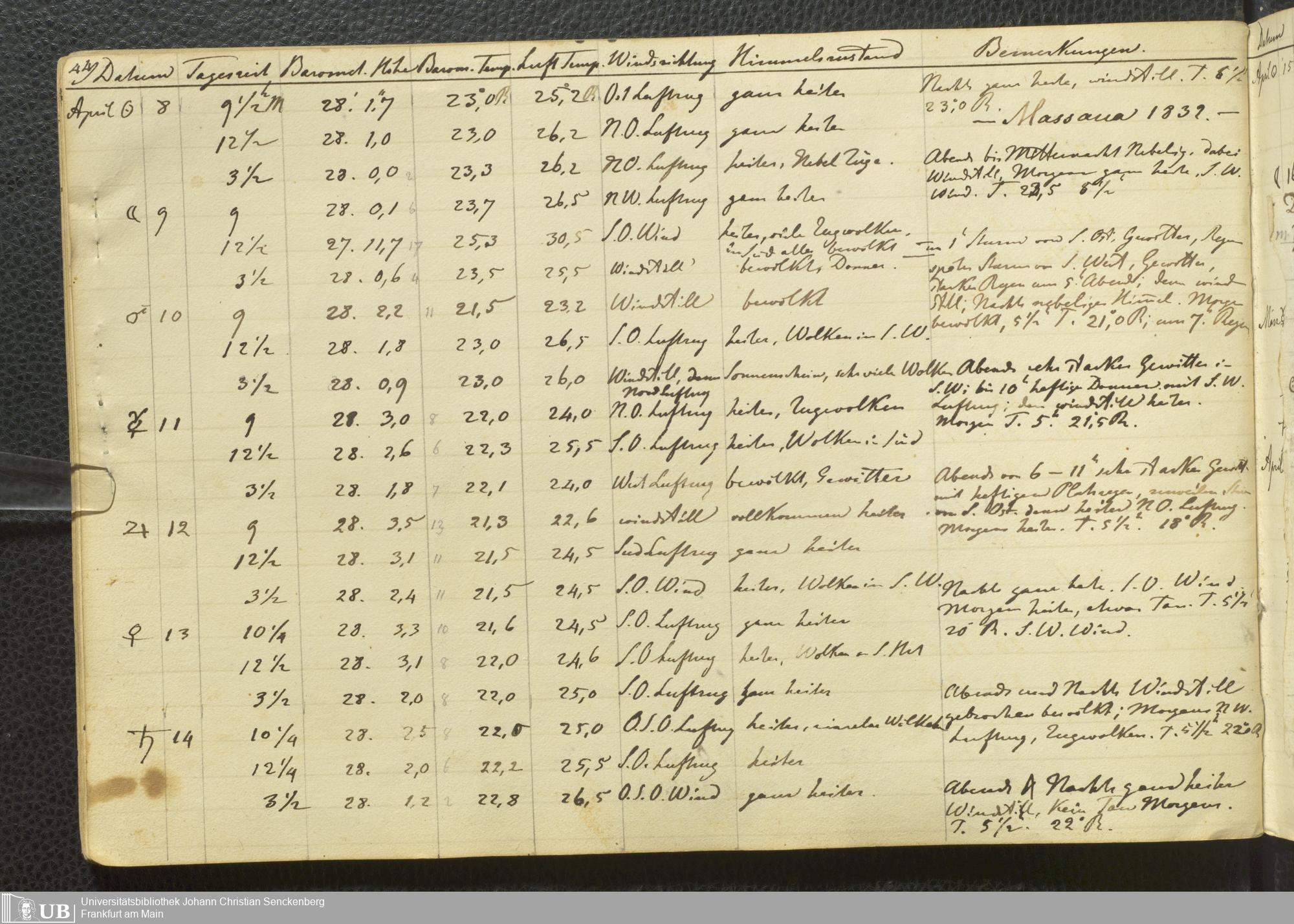Ms. Ff. E. Rüppell III Bd. 1 - Journal der meteorologischen Beobachtungen