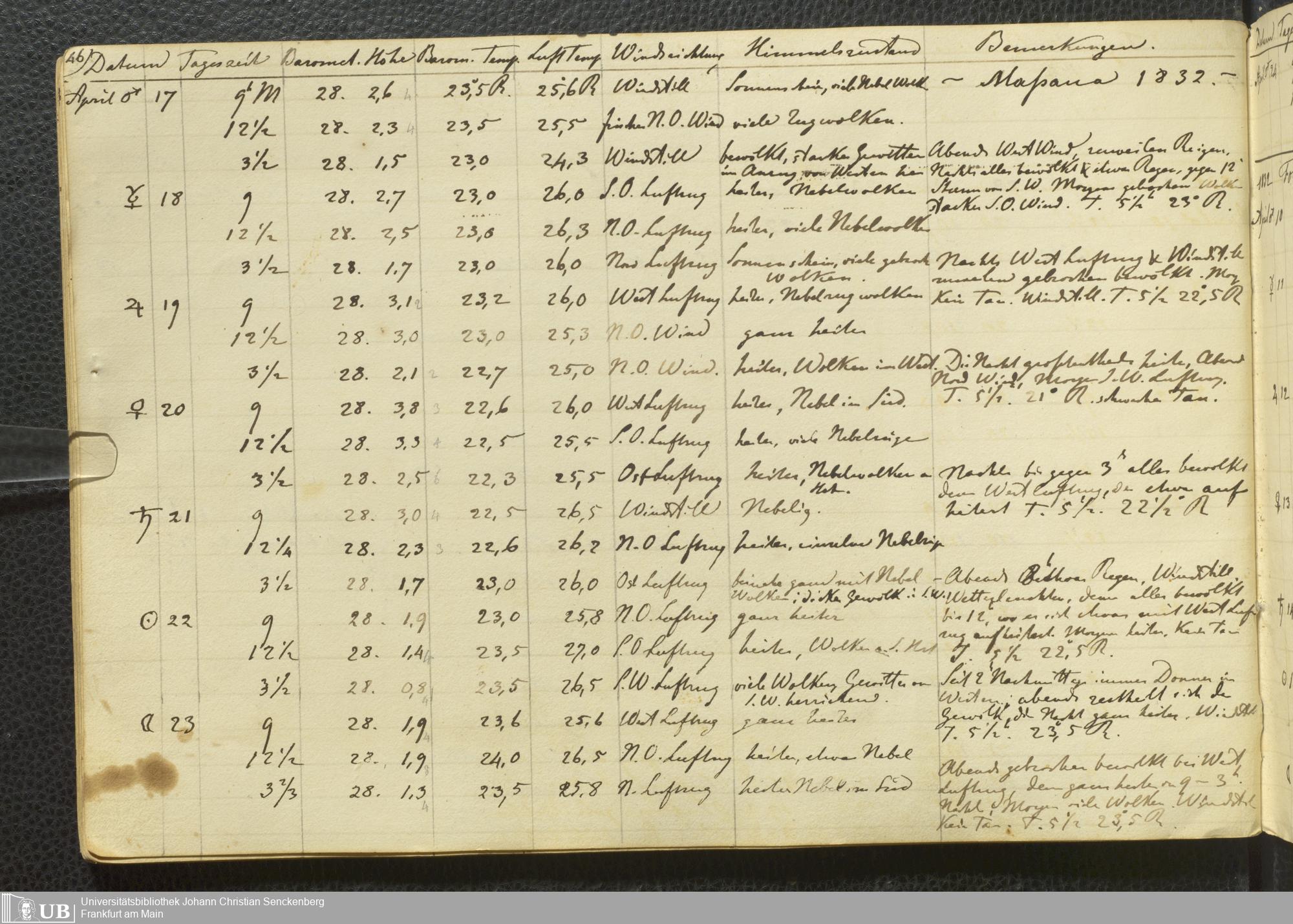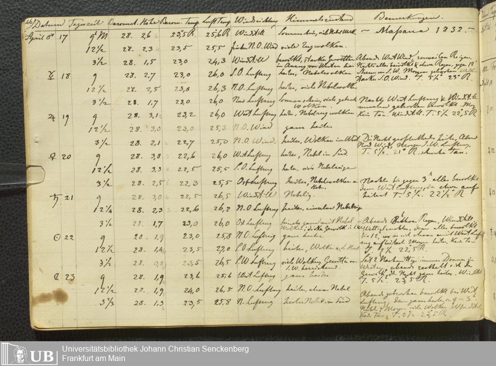 Ms. Ff. E. Rüppell III Bd. 1 - Journal der meteorologischen Beobachtungen