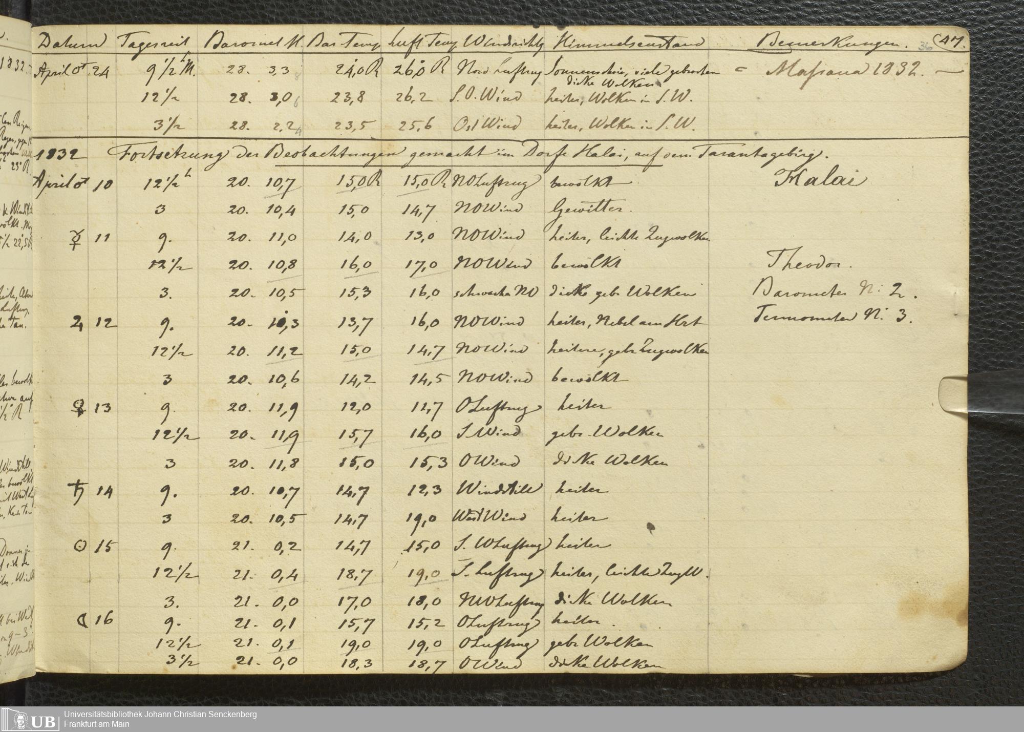Ms. Ff. E. Rüppell III Bd. 1 - Journal der meteorologischen Beobachtungen