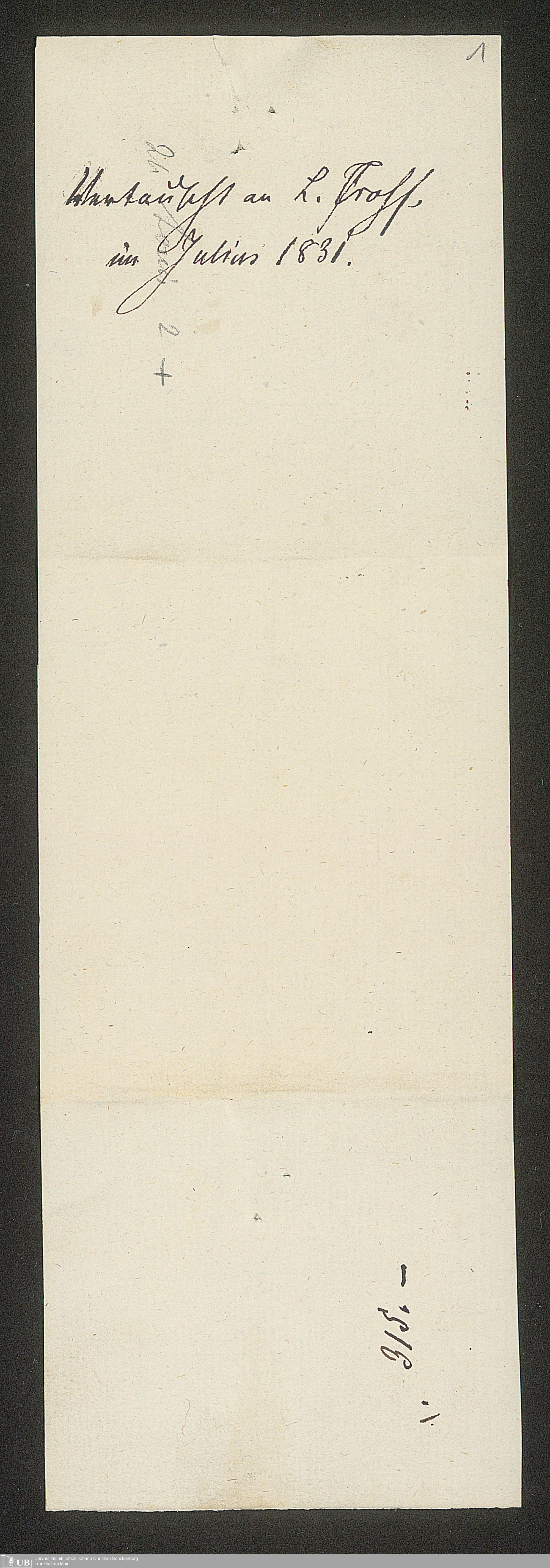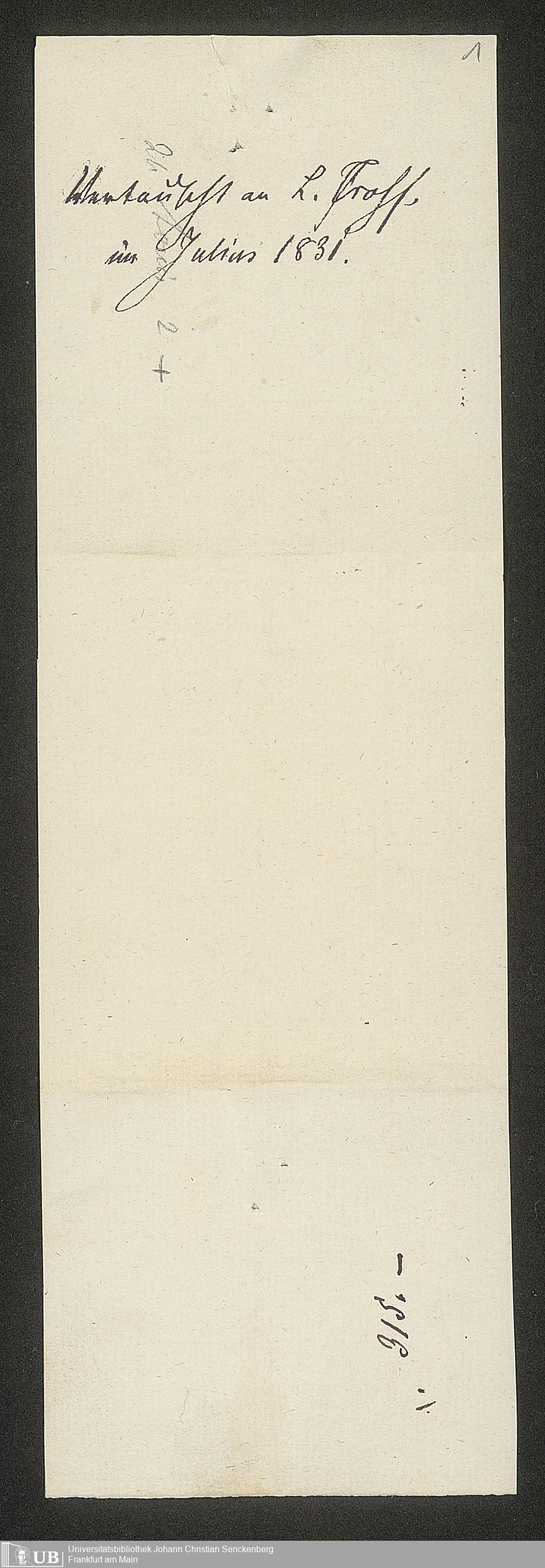 Ms. Ff. G. Kloß II.1.2 - Karteikarten und Versandbeleg zu einem Bücherverkauf an Ludwig Tross vom Juli 1831