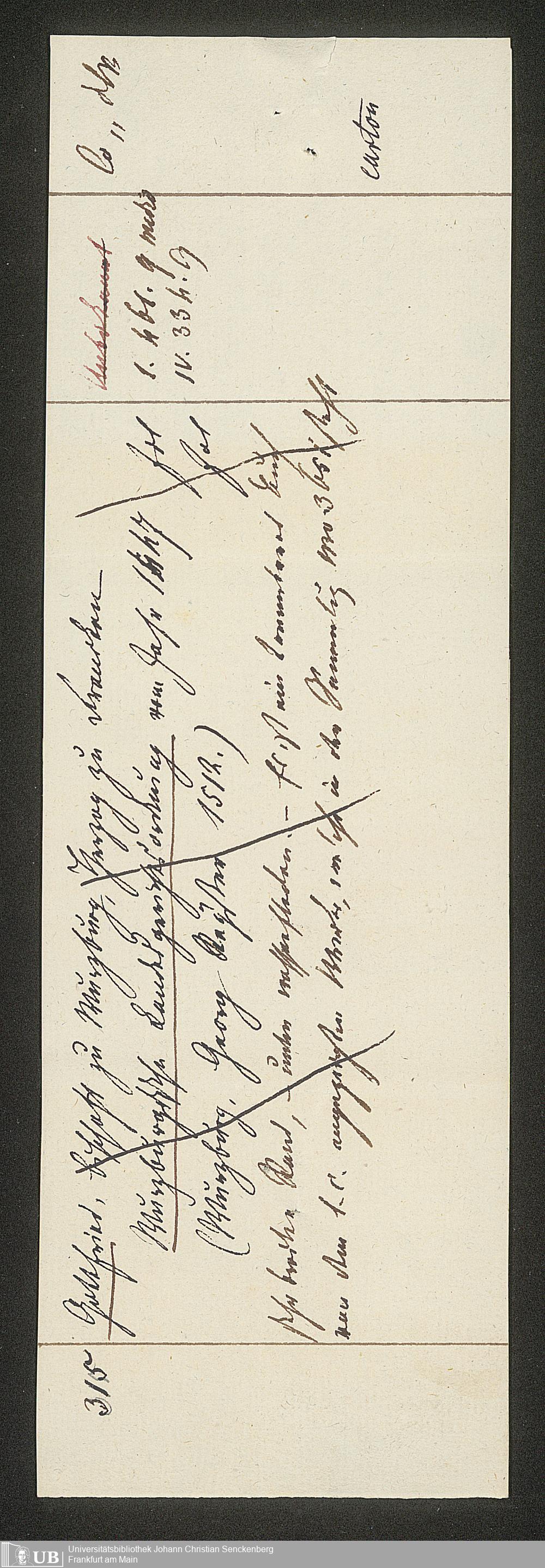 Ms. Ff. G. Kloß II.1.2 - Karteikarten und Versandbeleg zu einem Bücherverkauf an Ludwig Tross vom Juli 1831