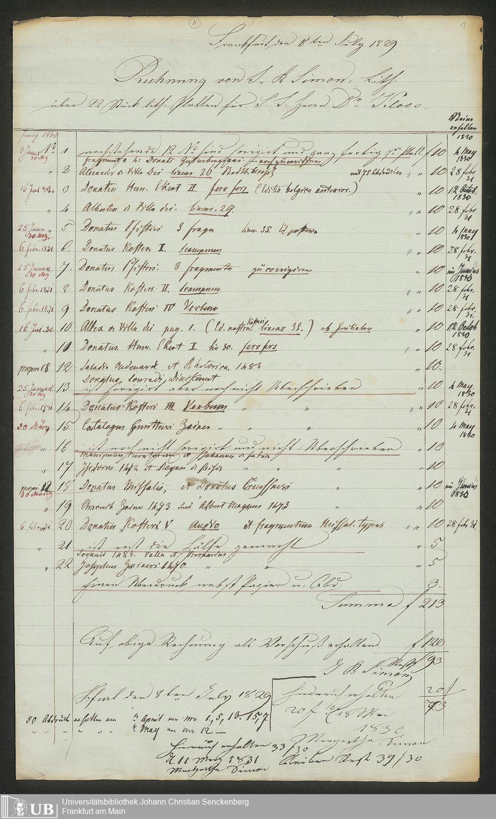 Nachlass Johann Christian Senckenberg