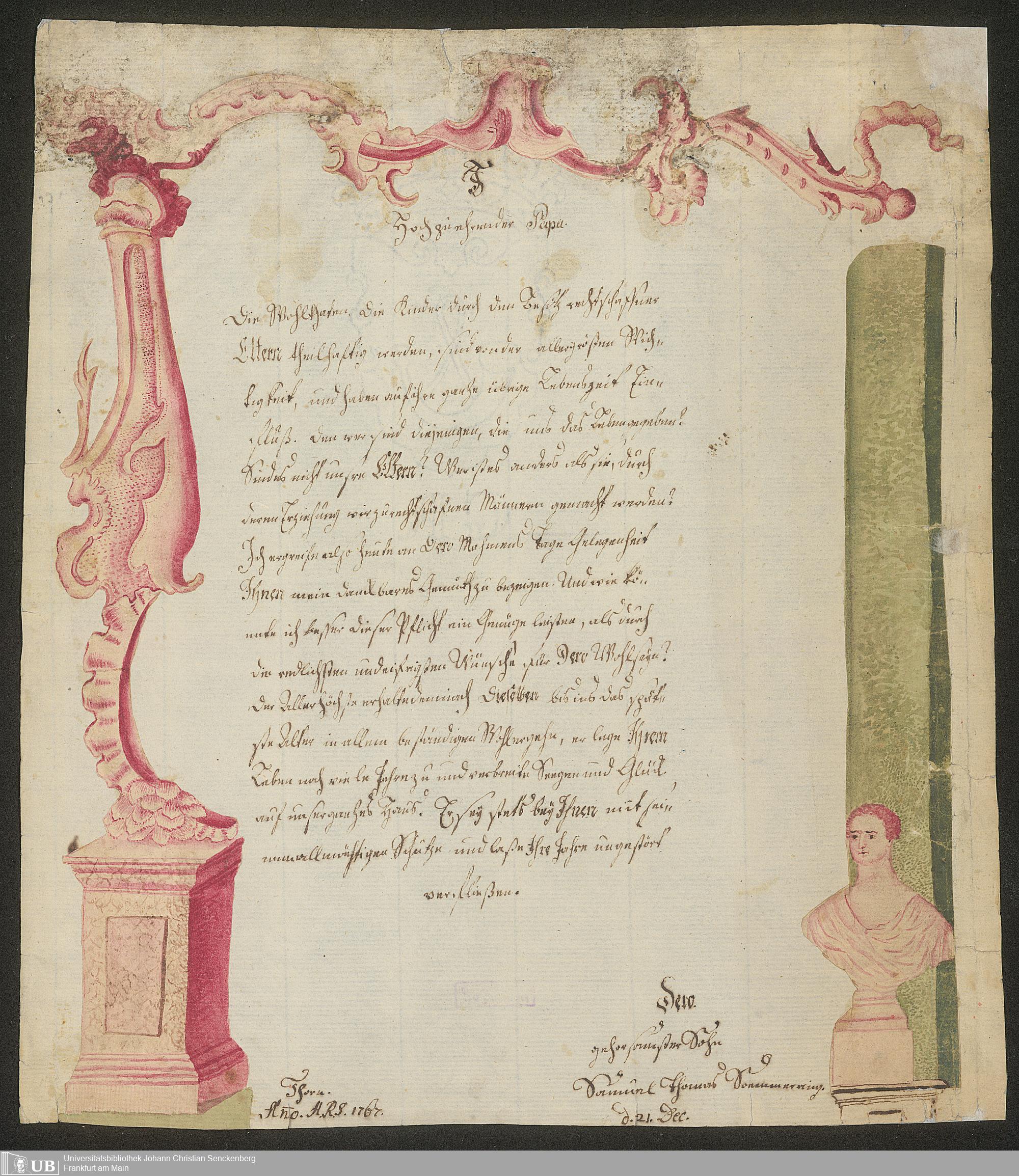 Ms. Ff. S. Th. v. Soemmerring 7 B - 43 Neujahrs-, Weihnachts-, Geburtstags- und Namenstagsgratulationen in Versen und in Prosa an beide Eltern, besonders an den Vater gerichtet. 1 Neujahrsschreiben der Mutter.