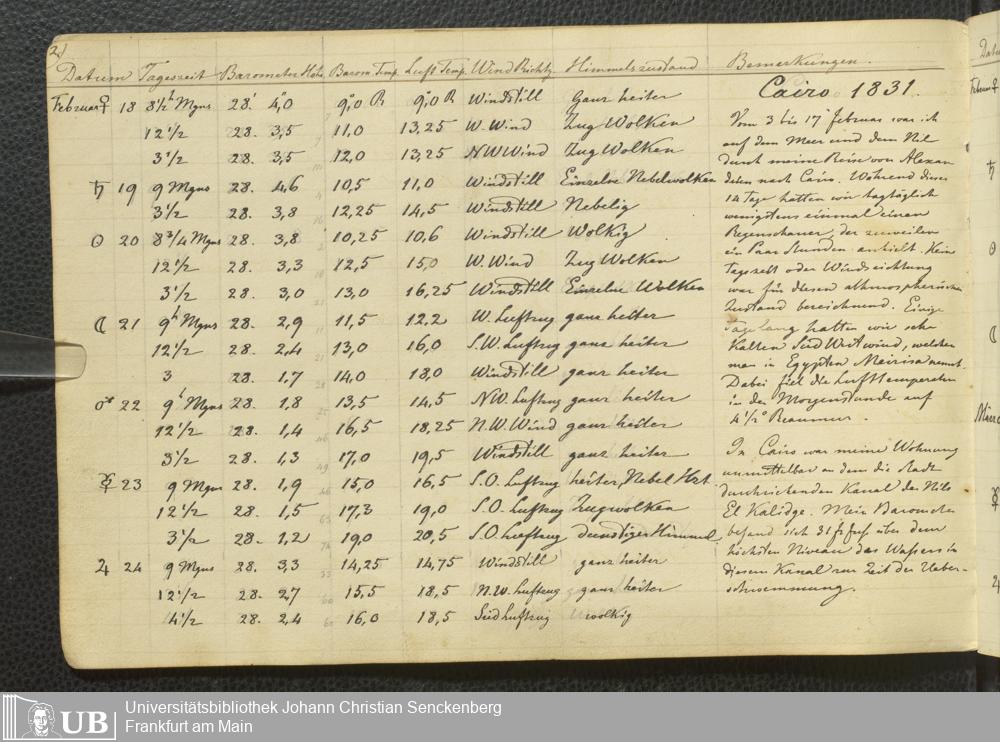 Ms. Ff. E. Rüppell III Bd. 1 - Journal der meteorologischen Beobachtungen