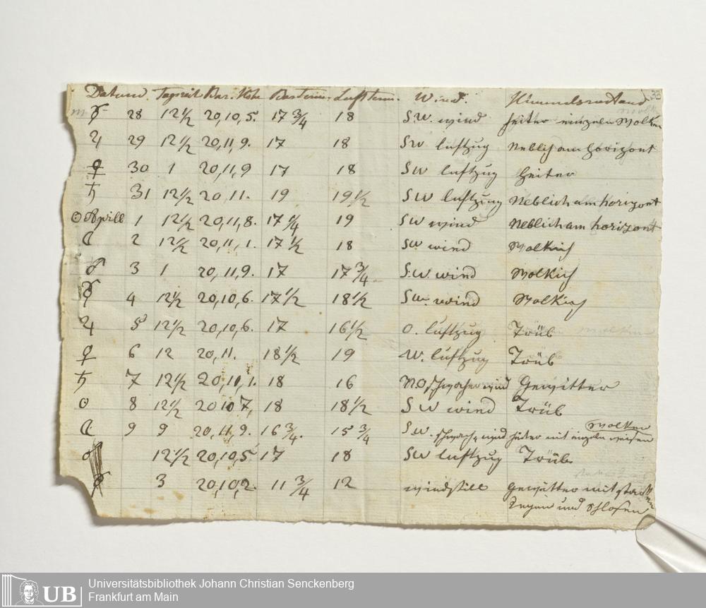 Ms. Ff. E. Rüppell III Bd. 1 - Journal der meteorologischen Beobachtungen